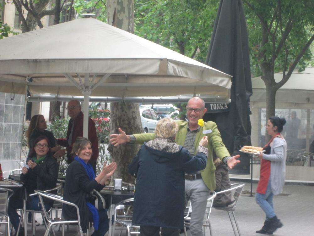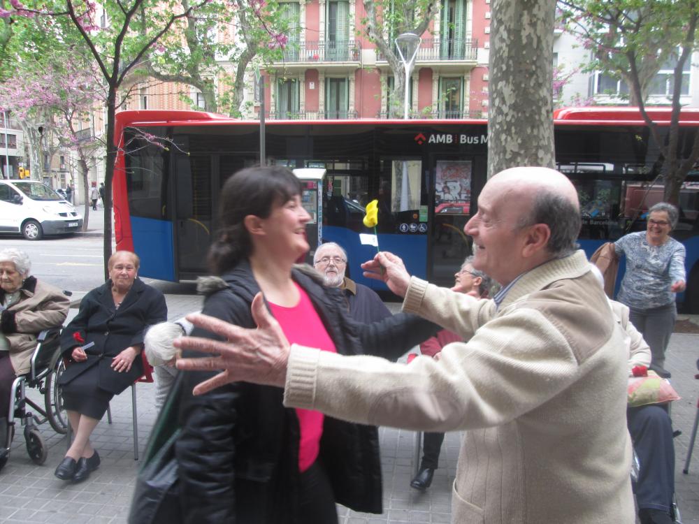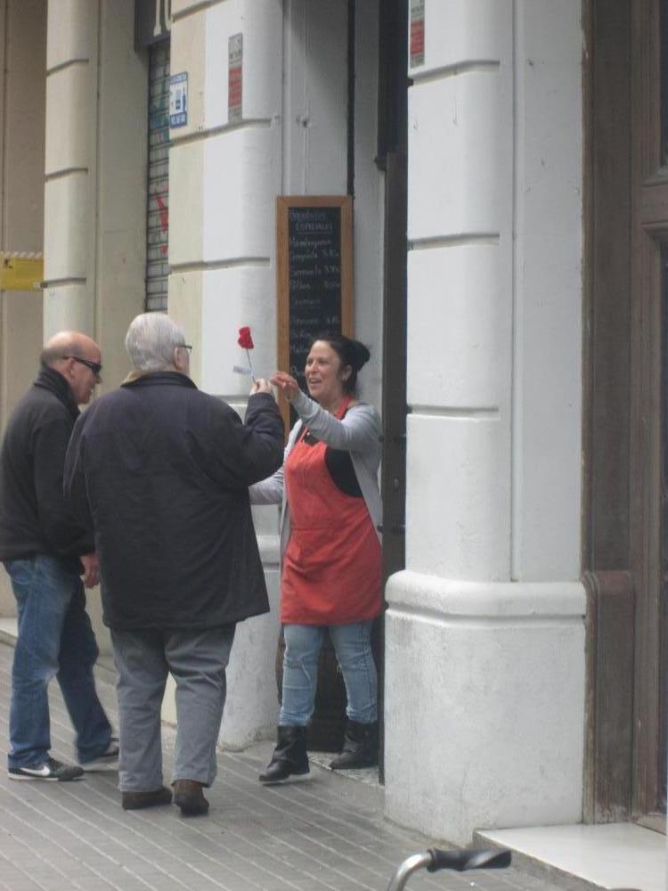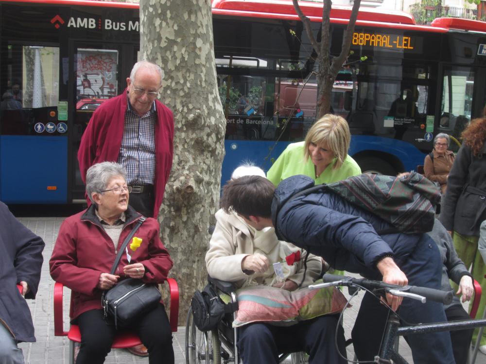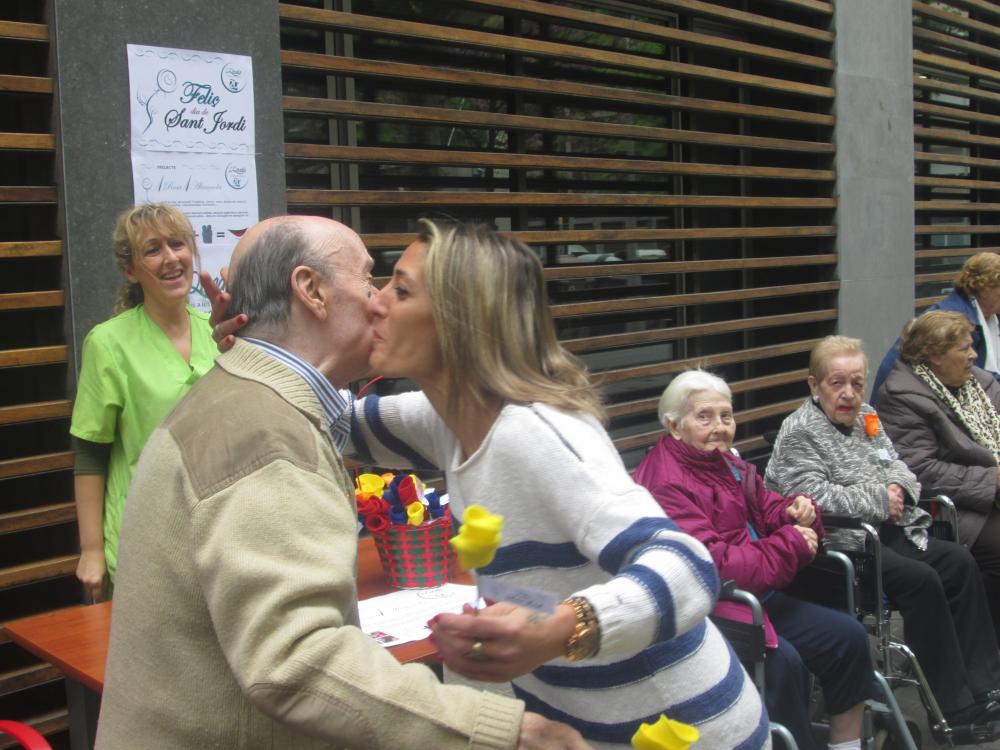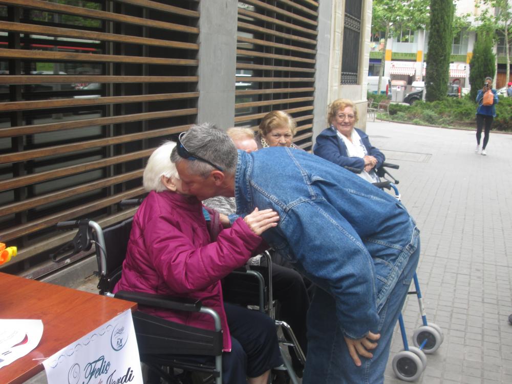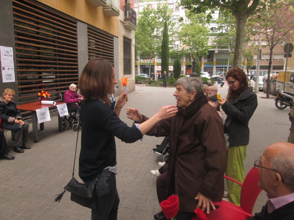 A Sant Antoni vam celebrar Sant Jordi sortint a repartir roses amb "una rosa, una abraçada", vam repartir totes les flors que havíem fet i vam aconseguir un munt de petons i abraçades.