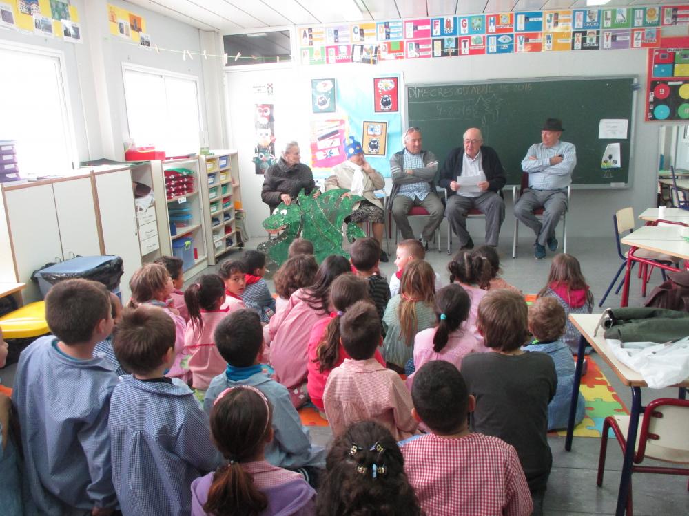Des del nostre Centre de Dia hem engegat un projecte intergeneracional enfocat als més petits del nostre poble. Es tracta d'un taller de conta-contes protagonitzat pels usuaris i usuàries del Centre de Dia. Aquests, amb molta il·lusió han estat preparant-se la llegenda de Sant Jordi per tal de poder-la contar als alumnes d'Educació Infantil de totes i cadascuna de les escoles del nostre poble. Les escoles Sant Sebastià, Assumpció, Manuel Foguet, Jaume I, Divina Providència, Misericòrida i Consolació han col·laborat en el projecte. És un plaer per a nosaltres poder compartir aquest projecte intergeneracional amb tota la població de Vinaròs, i des d'aquí volem agraïr la gran acollida que han mostrat totes i cadascuna de les escoles, a banda també de la seva gratitud i iniciativa.