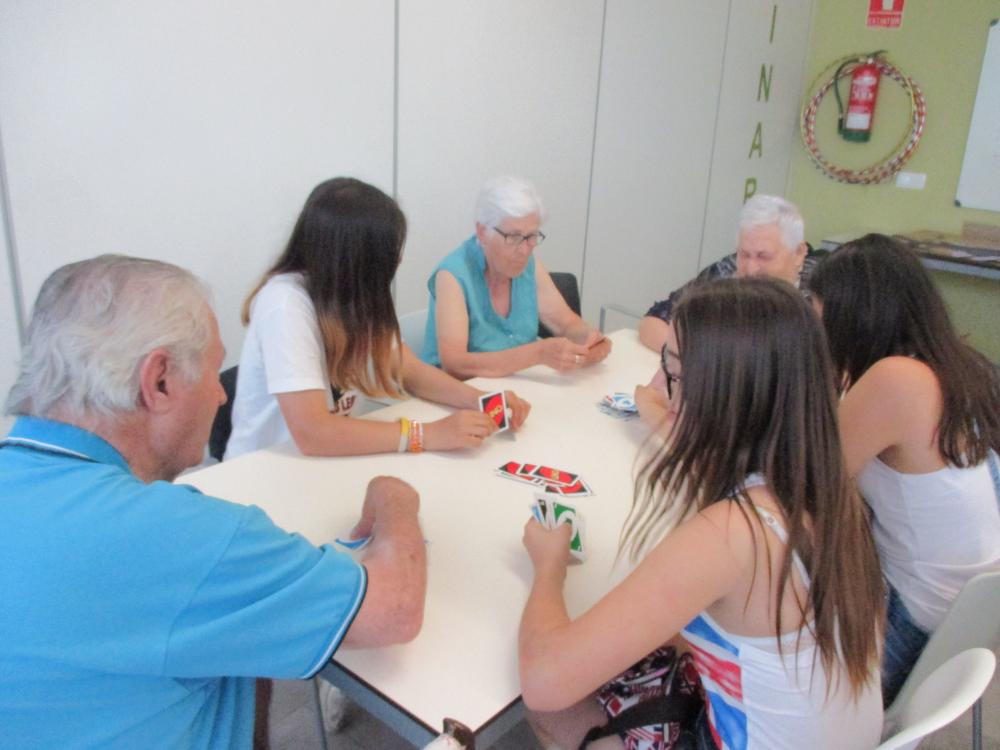 Grans i joves hem compartit jocs tradicionals de taula com ara el parxís, la oca, el bingo, el dòmino i d'altres més actuals com l'uno. Ha estat una estona molt agradable per a tothom, tant és així que esperem poder repetir tan aviat com comenci el curs.