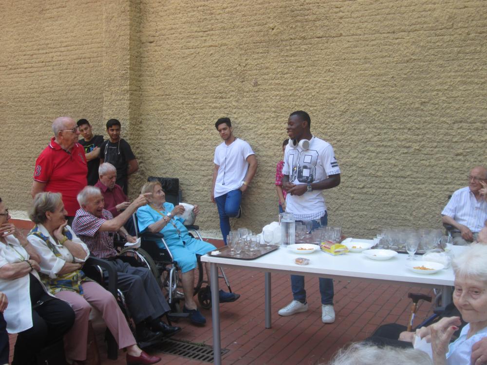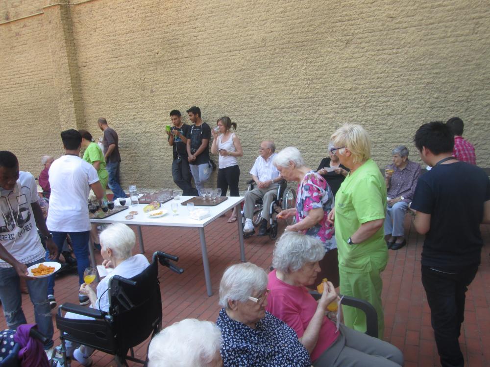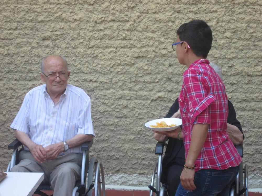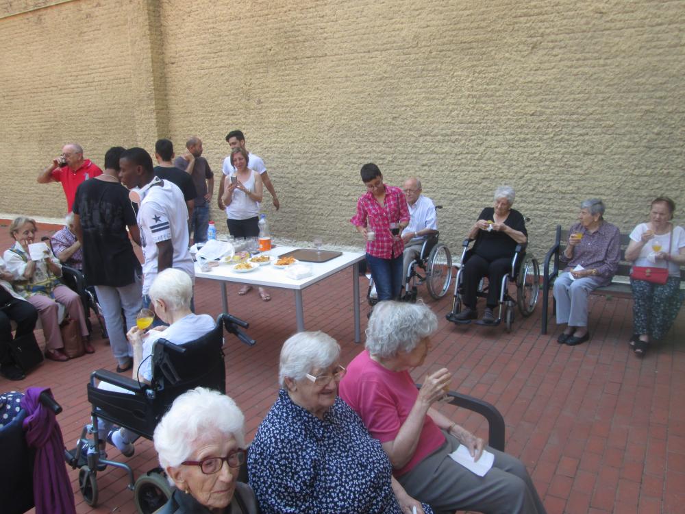 Aquest matí, els joves que han instal·lat el reg automàtic al nostre jardí han vingut a acomiadar-se amb un petit pica-pica.