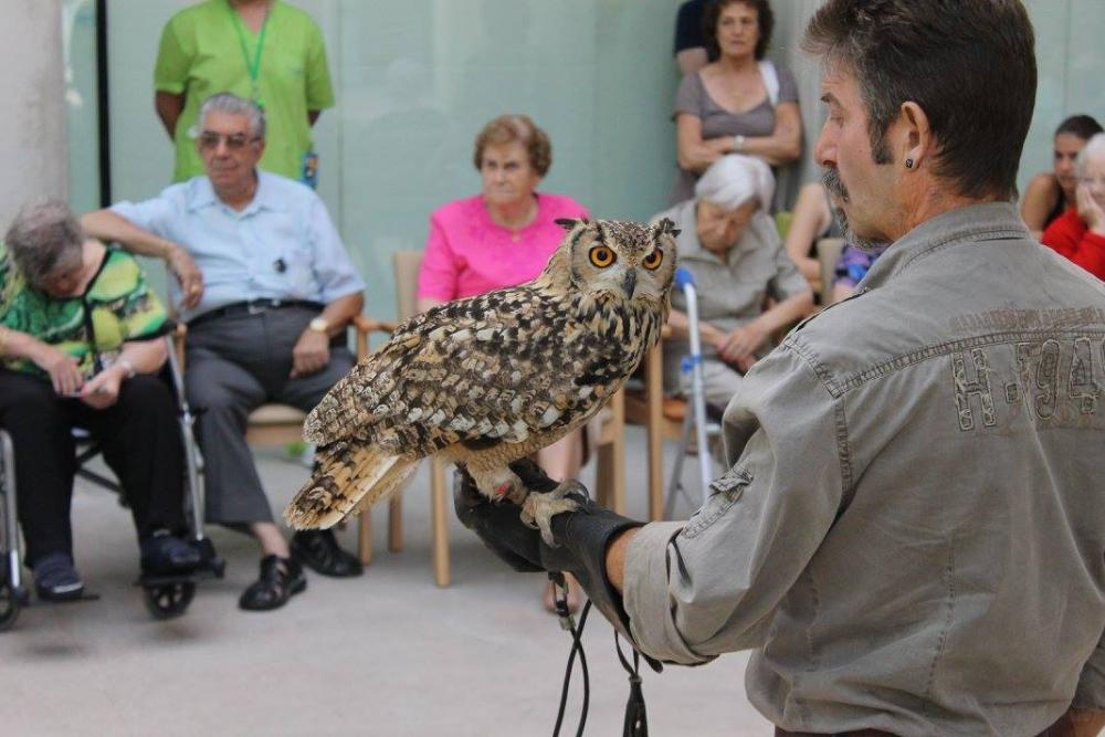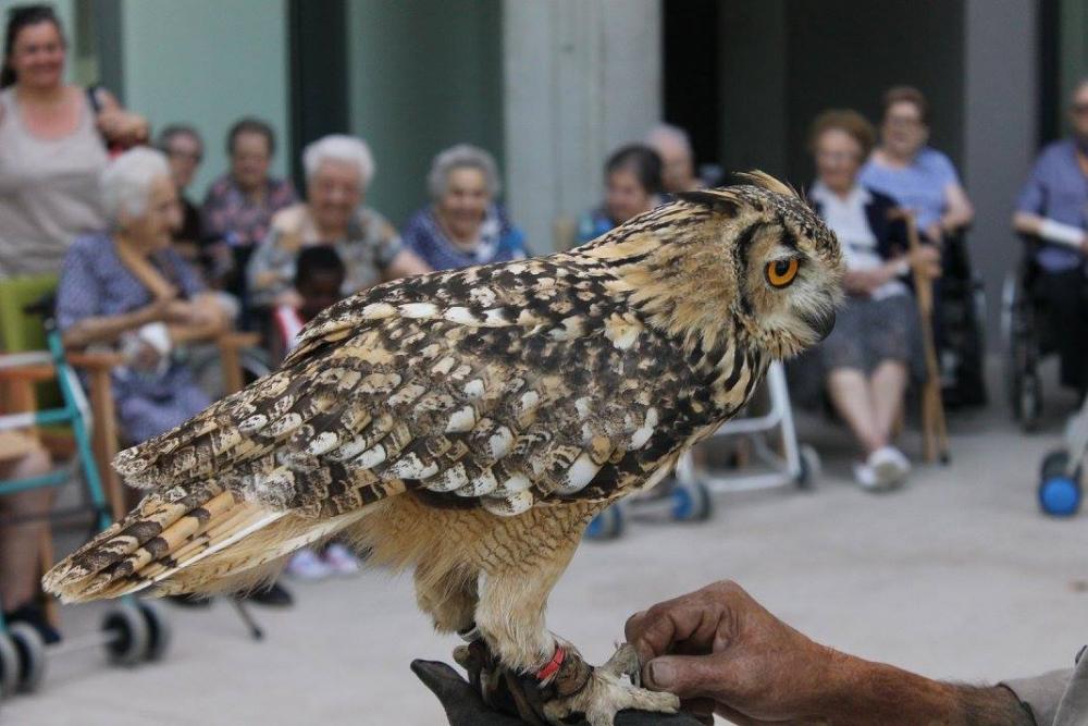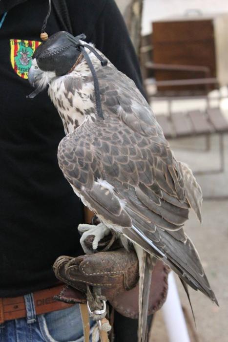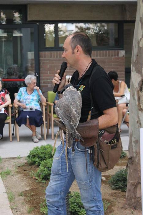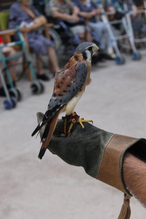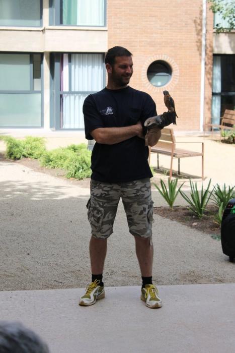 Un falcó, un xoriguer americà, un gran duc (Museo Bengalí) i una àliga que ens han portat membres de la Federació Catalana de Caça i de la Societat "Falconeria del Segle XXI" amb el president del Coto al capdavant.