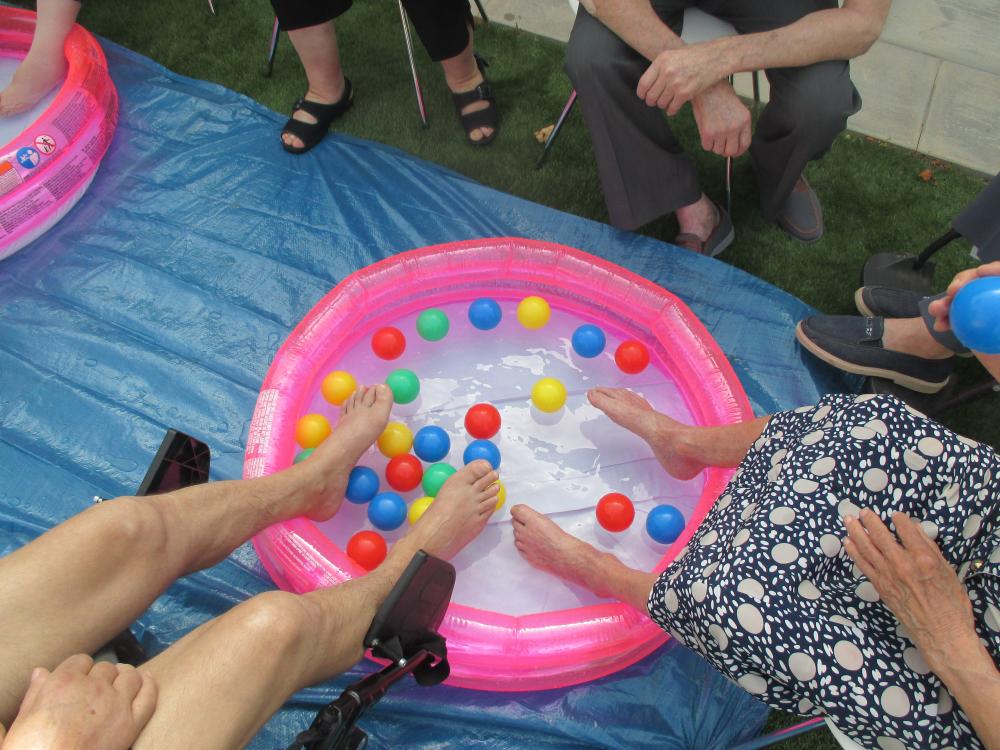 Per lliurar-nos una mica de la calor, a L'Onada Vinaròs aquest any hem estrenat una nova activitat per a mullar els peus i refrescar-nos. Un cop a la setmana sortim al jardí, omplim la piscina i fem activitats amb les pilotes de colors. Estem tan a gust que no marxariem!