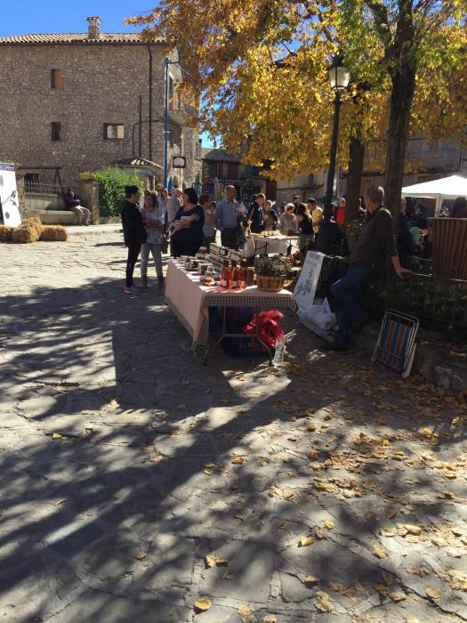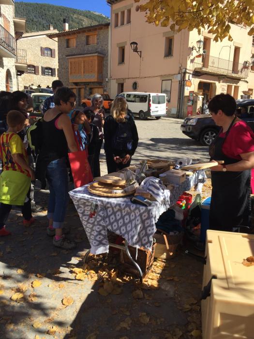 Després vam grimpar a les ruïnes del poble antic, agrupat al voltant del castell dalt d’un turó i des de la torre es va poder gaudir d’una bona panoràmica del Pedraforca. Un cop recobrat l’alè vam baixar al poble i vam coincidir amb la mostra gastronòmica del pèsol negre i un petit mercat agroalimentari amb productors del Parc Natural Cadí-Moixeró.