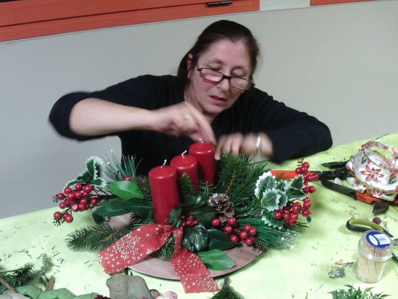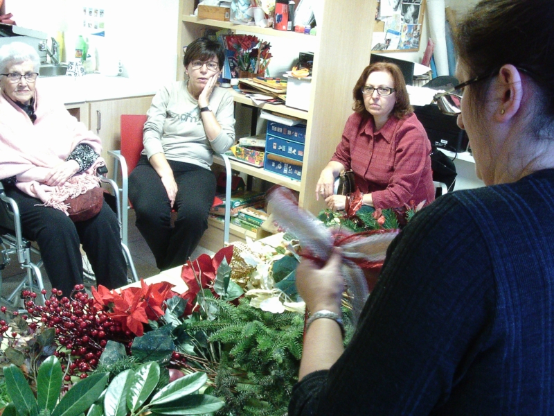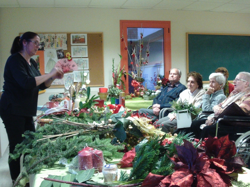 La Sra. Dolors Claret, filla d'una de les nostres residents, ens ha fet per segon any consecutiu un taller de centres de Nadal. D'aquesta manera ens ha explicat diferents trucs i tècniques per a confeccionar tan centres naturals com artificials per adornar la casa durant les festes.