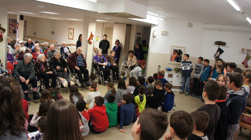També han repartit entre tots els residents una felicitació de Nadal que han fet a l'escola i han recitat poemes i versos de nadal per a tots nosaltres.