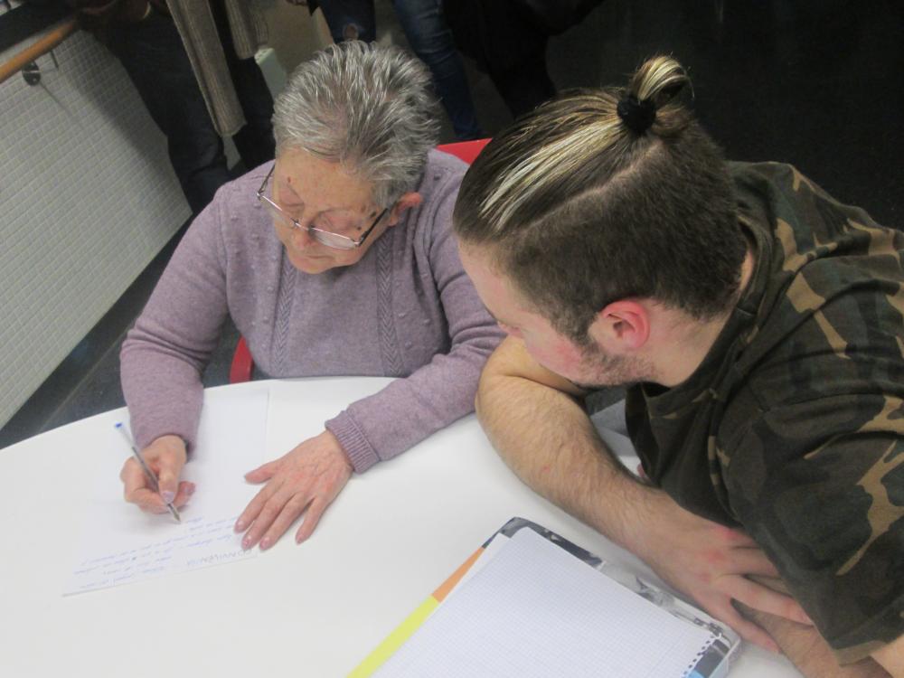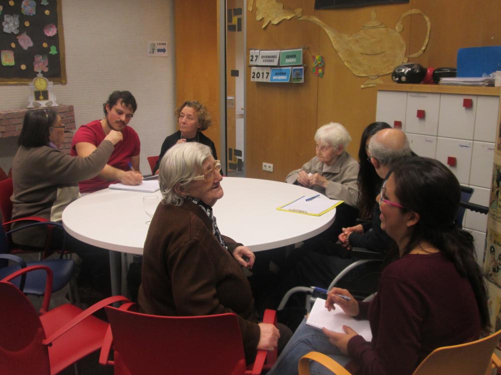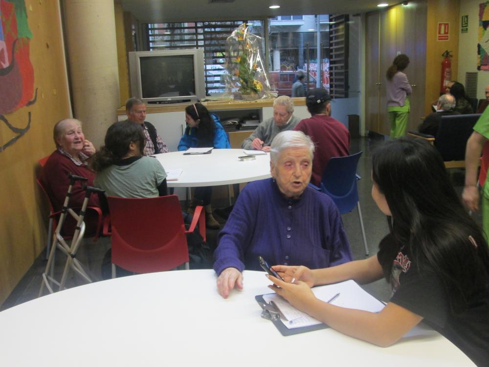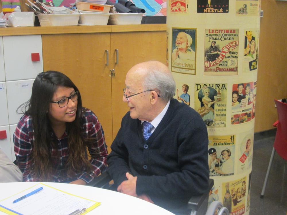 Divendres vàrem fer la primera sessió del projecte intergeneracional amb els estudiants d'integració social d'un institut del barri. Durant tota la tarda els avis van poder compartir amb els estudiants les seves històries de vida.