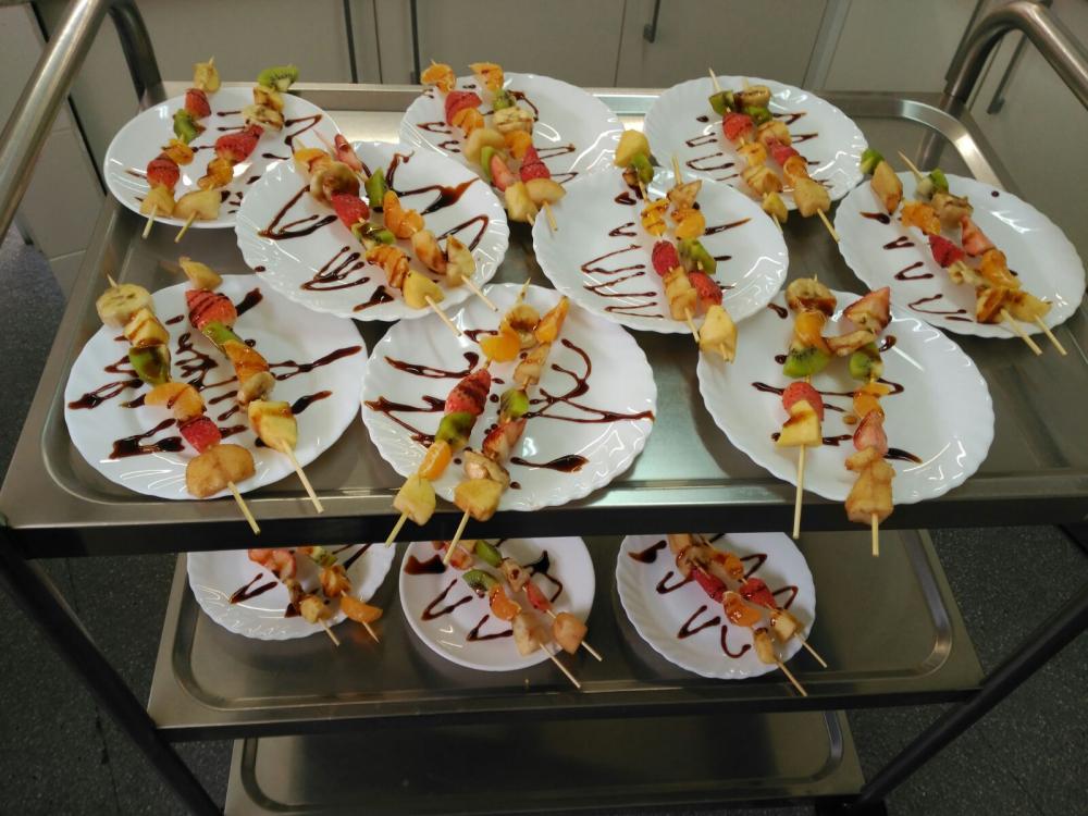 Aquests dies estem de cuinetes! La setmana passada vam fer unes pomes al forn amb canyella molt bones i ahir vam fer uns pintxos de fruita! Postres bons i saludables!