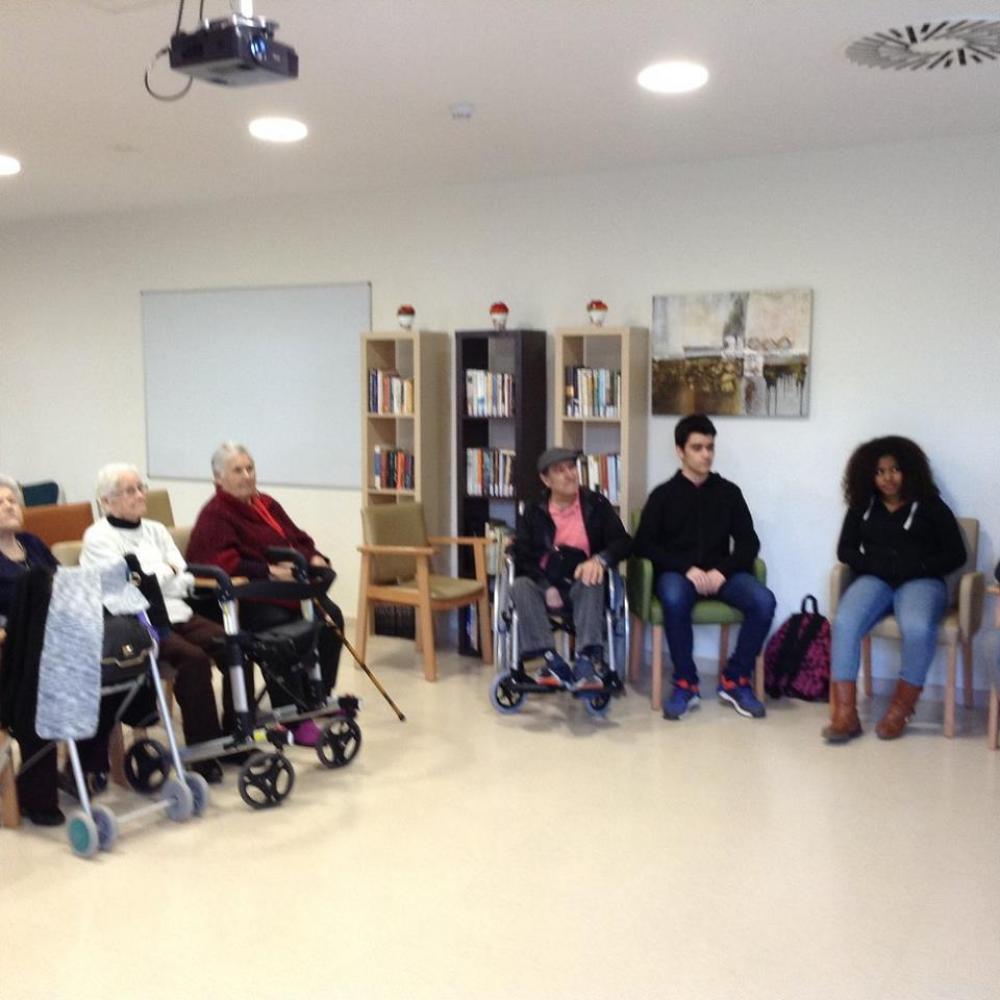 Els nois i noies de l'IES d'Auro i de l'Escola Llissach de 3r d'Eso, han iniciat un projecte comunitari amb les seves respectives classes en el que venen a compartir activitats amb els usuaris de la residència.
