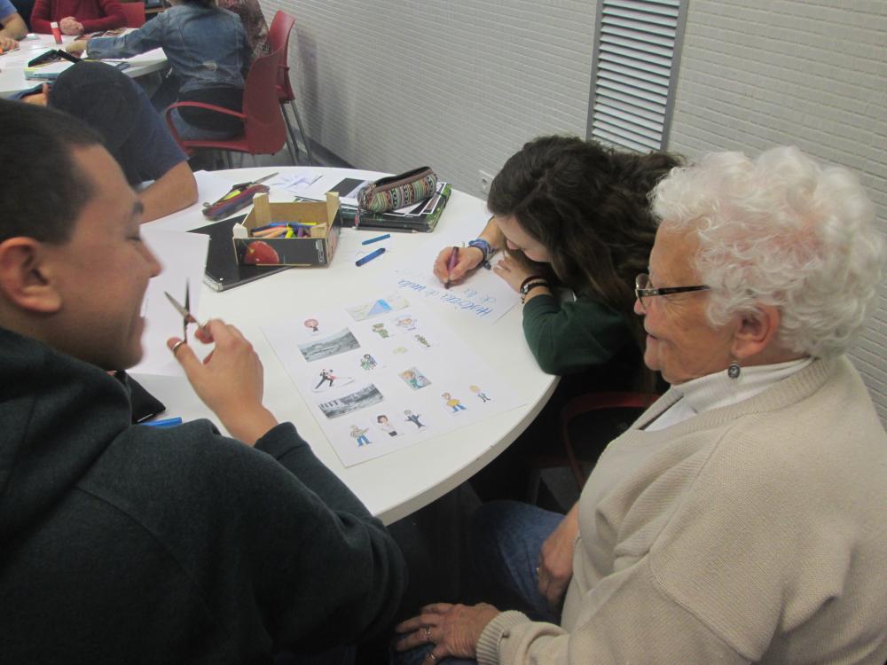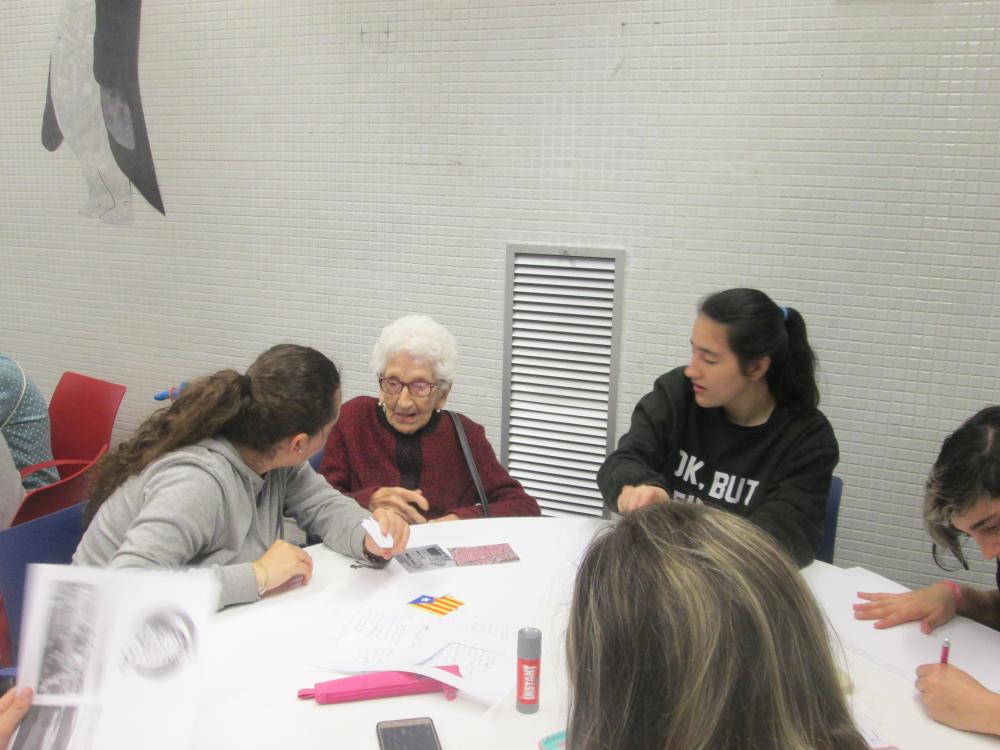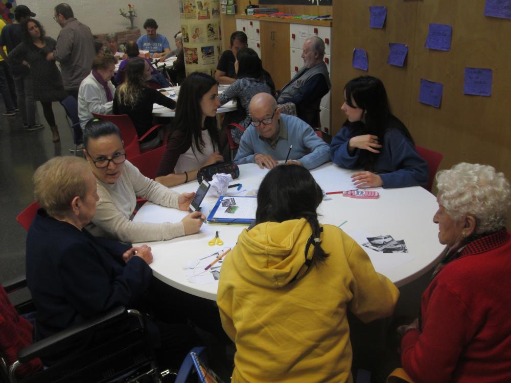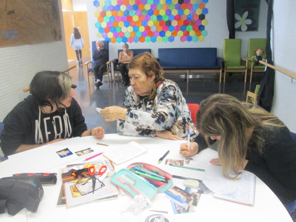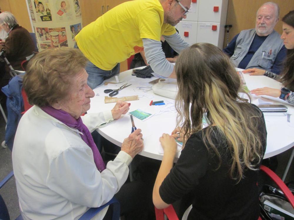 Divendres vàrem fer la tercera sessió del projecte intergeneracional. Els joves d'integració social juntament amb els avis van fer el muntatge gràfic de les seves històries de vida
