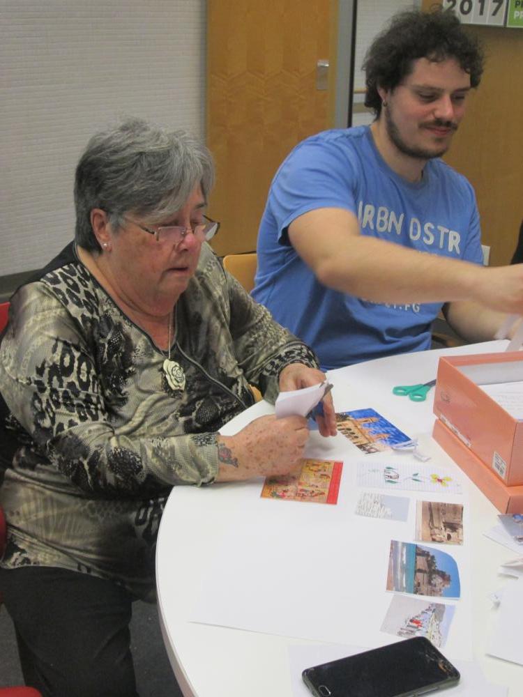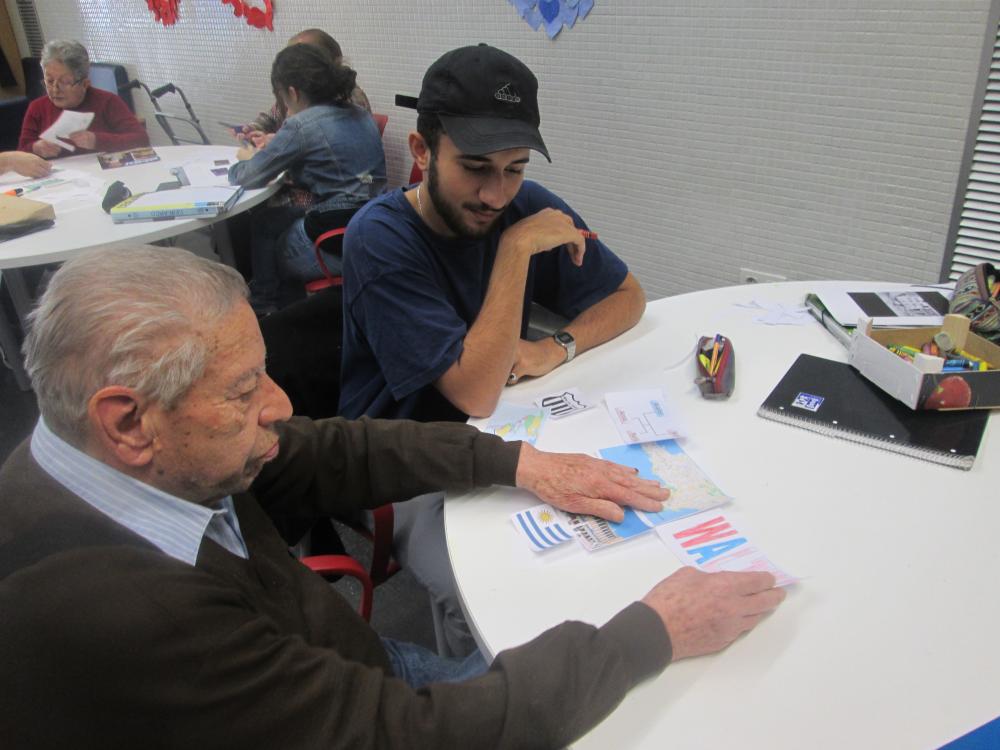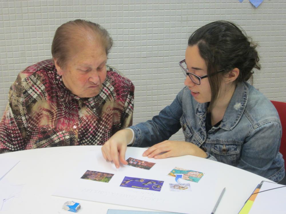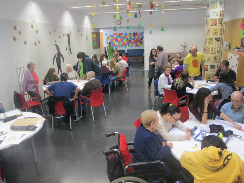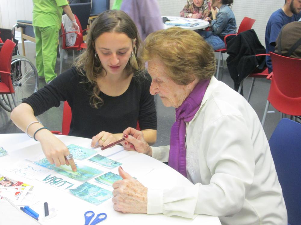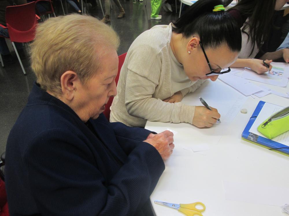Divendres vàrem fer la tercera sessió del projecte intergeneracional. Els joves d'integració social juntament amb els avis van fer el muntatge gràfic de les seves històries de vida
