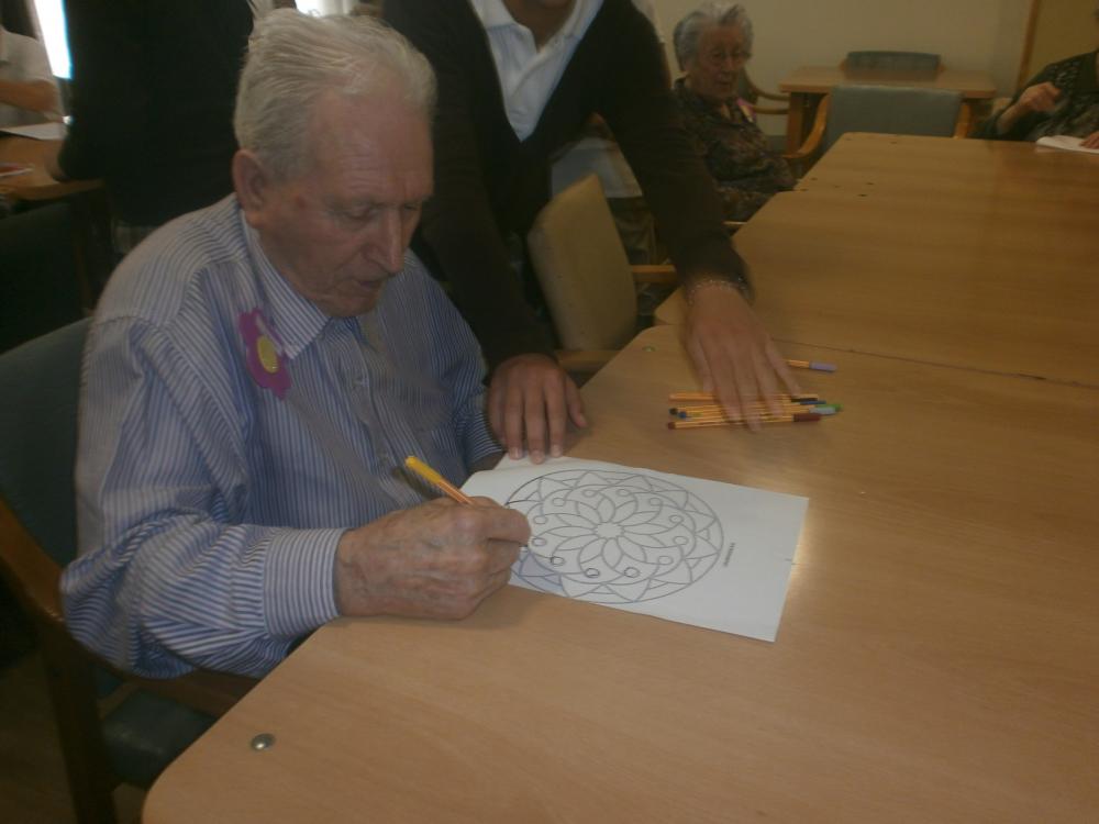 Hem participat amb jocs de preguntes amb ells, hem pintat mandales,hem tingut converses amb ells, hem fet pulseres i ens hem arrancat a cantar i tot!