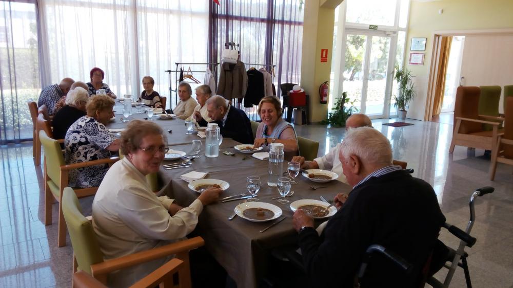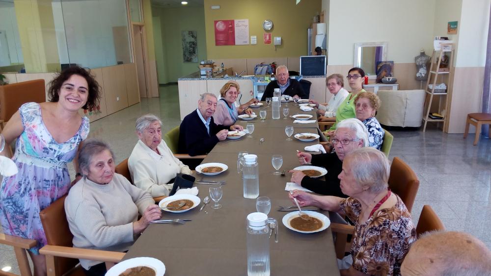 Vam dinar tots junts. Al llarg de la tarda vam estar gaudint del bon temps al jardí i, finalment, vam jugar al bingo.