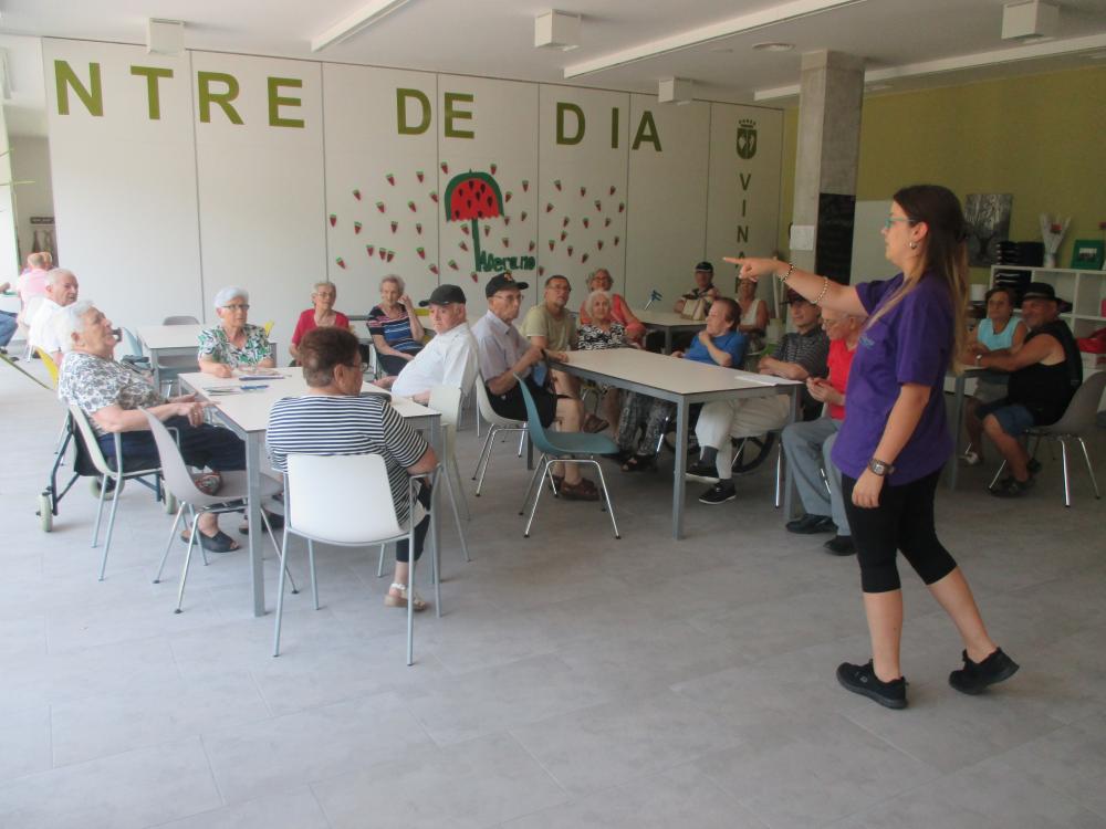 Veïns i veïnes de la població van poder visitar les instal·lacions del centre, així com també participar conjuntament amb els nostres usuaris/es en un taller d'entrenament de la memòria, un de gimnàstica adaptada i, finalment, un pica-pica al jardí.