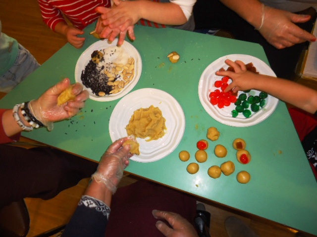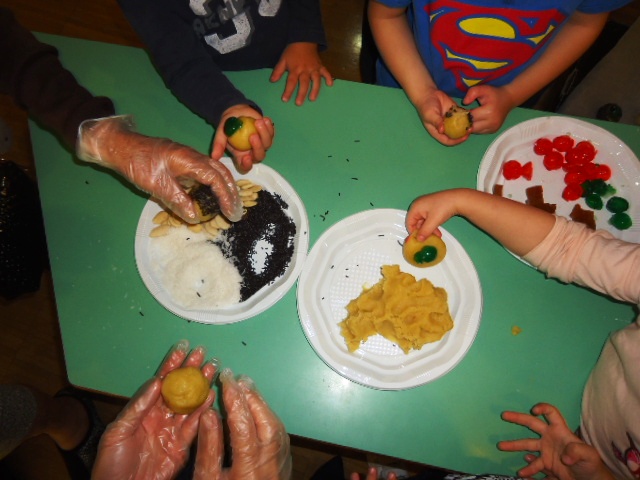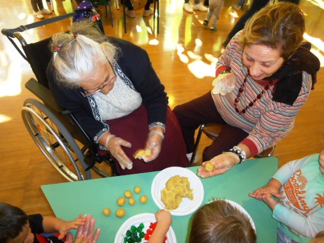 Dilluns 30 d'octubre al matí vam anar a la Llar d'Infants Els Picarols de Riudoms a ajudar als més petits del poble a preparar els panellets per la Castanyada.
