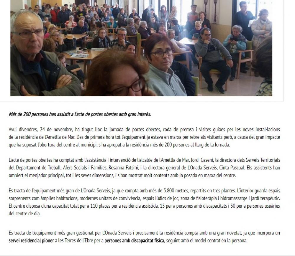La Residència L'Onada l'Ametlla de Mar s'omple de gom a gom en la jornada de portes obertes -Més Ebre