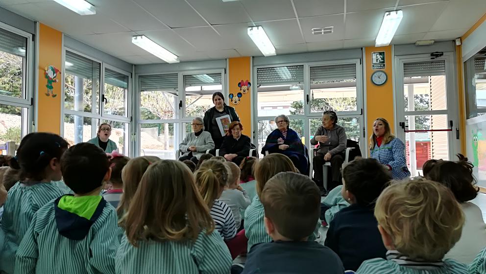 Els nens han gaudit del conte que els hi haviem preparat i l'han escoltat desde la tranquil.litat que transmeteixen els majors.