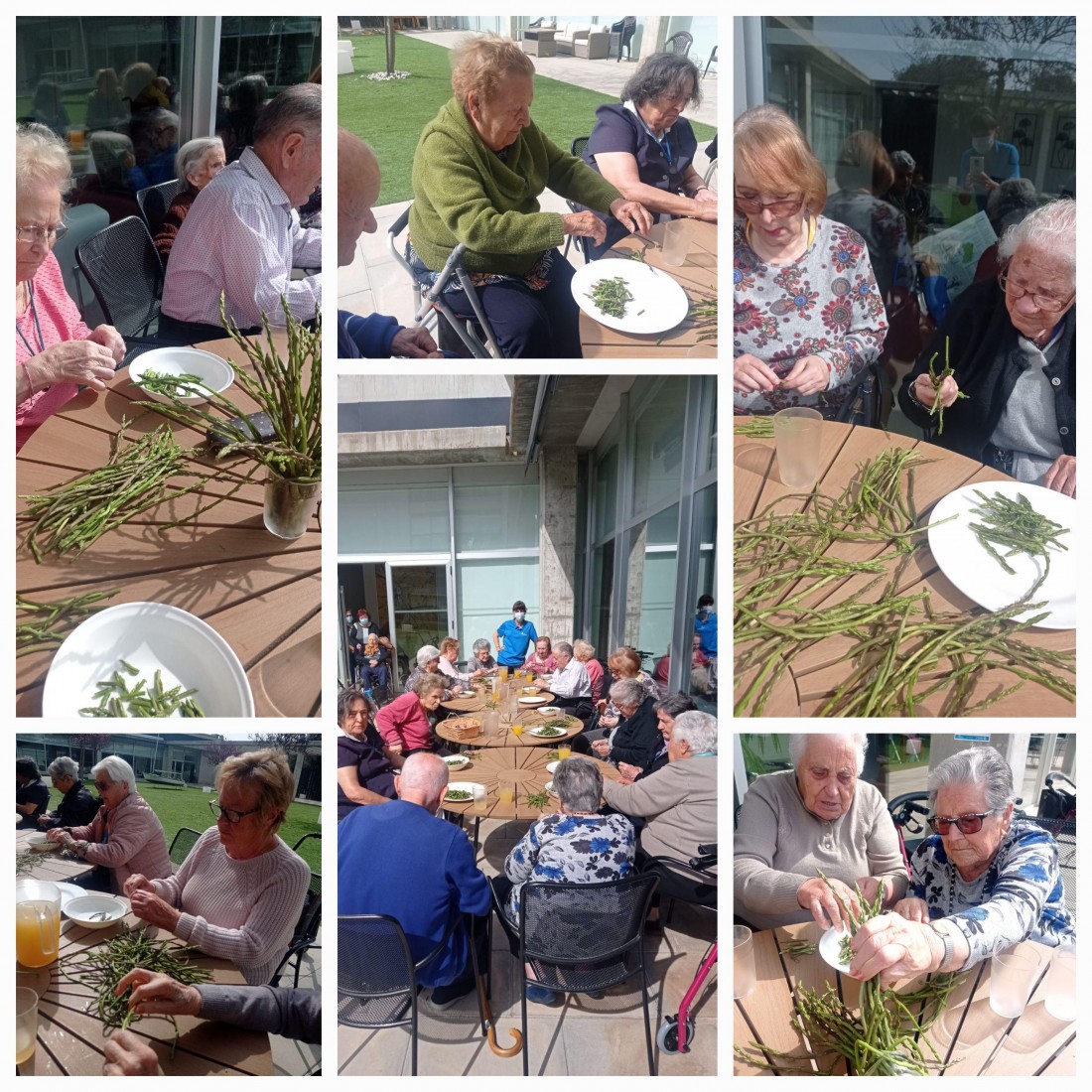 Una de les nostres treballadores, va anar a "fer espàrrecs" per a fer un taller de reminiscència i cuina. Primer els van triar, netejar i trossejar i per acompanyar els entrants del dinar, se'ls van menjar en allets!