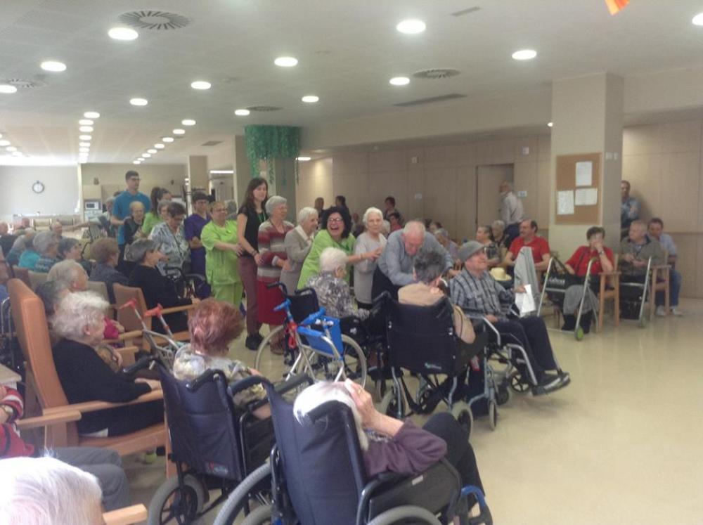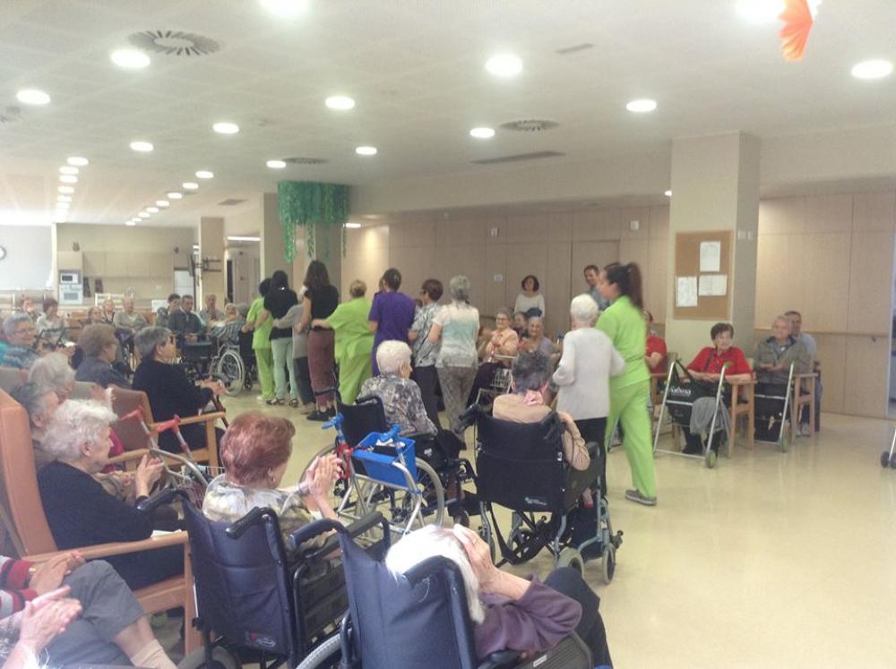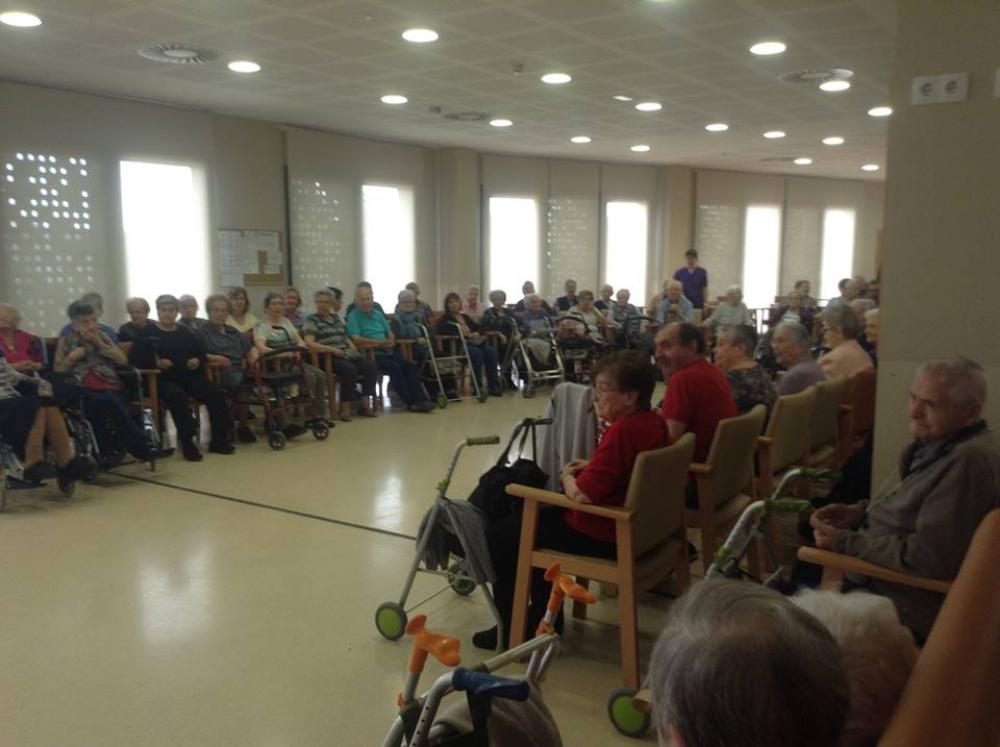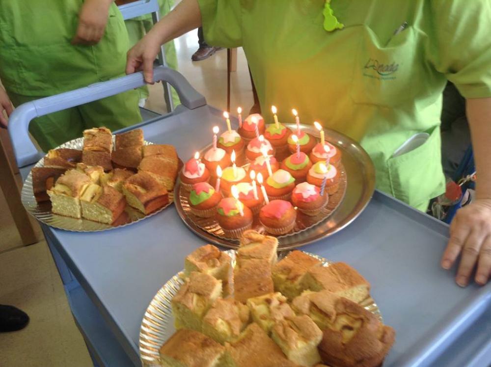 Després, els avis que havien fet anys i les seves famílies, vam bufar junts les espelmes. Aleshores vam berenar un pastís boníssim.