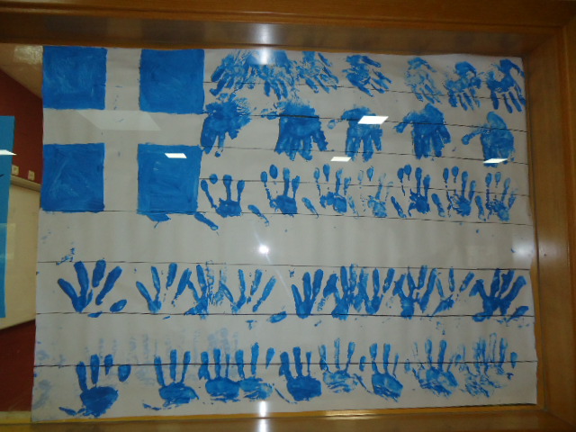 relacionades amb aquest fantàstic país. Primerament, van conèixer la seva cultura i costums, així com la música típica del país. També van fer la bandera de Grècia amb els seus colors característics. Després, van fer un recorregut per la cuina típica del país i, la nostra cuinera va elaborar un taller de cuina amb magdalenes de Grècia.