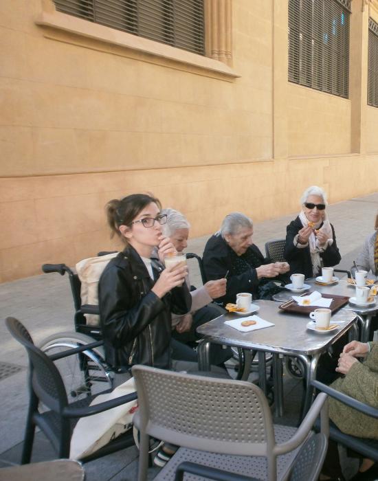 Com que el bon temps està arribant, hem volgut aprofitar la tarda d'avui fent una sortida a la plaça del mercat, on hem pres un cafè a l'aire lliure i després, hem donat una volta pel mercat.