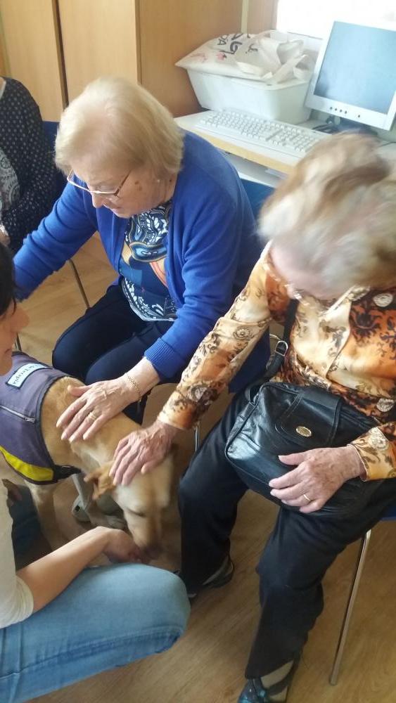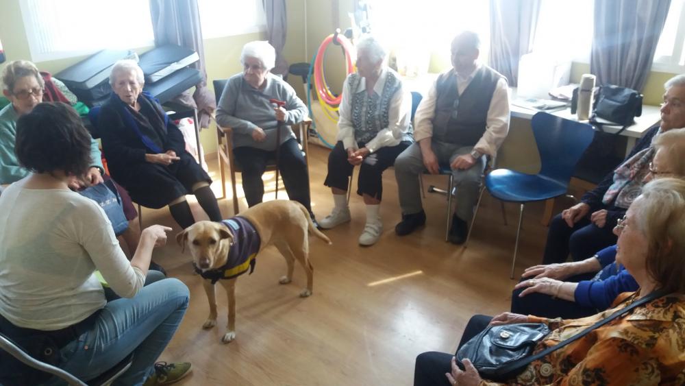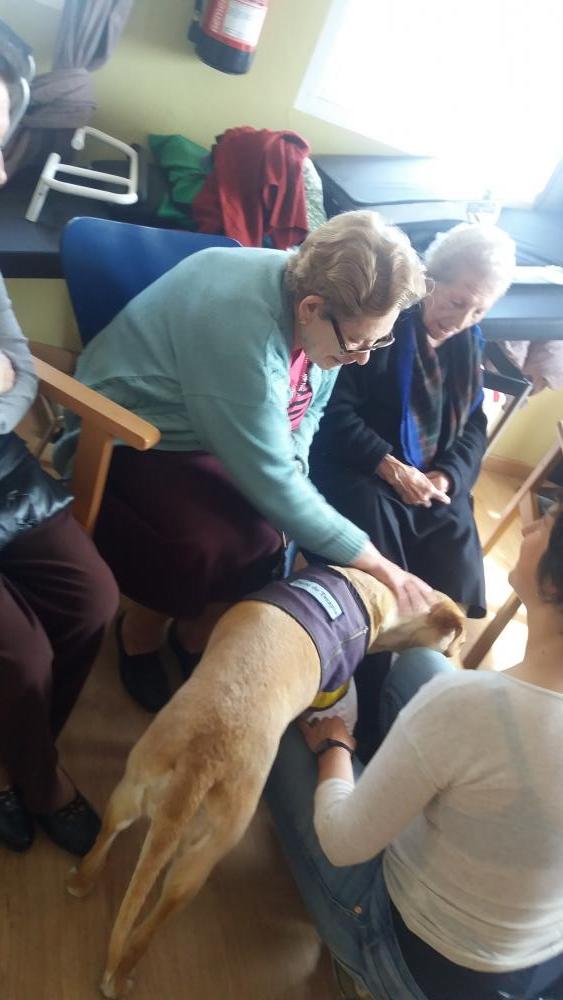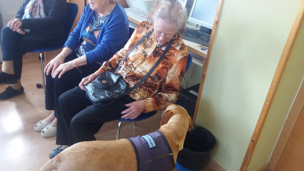 Ahir dilluns, va començar la teràpaia amb gossos, i alguns dels nostres residents van tenir l'oportunitat de coneixer a Poma, la gossa que vindrà cada dilluns a trebalar amb nosaltres. Van gaudir d'una estona molt agradable.