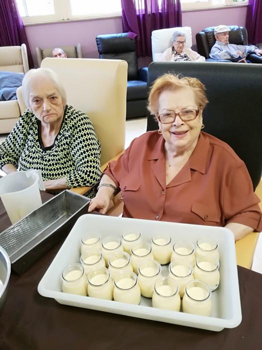 Els nostres residents en el marc de les activitats de la Unitat de convivència el.laboren en els tallers de cuina els postres que després de dinar gaudeixen.