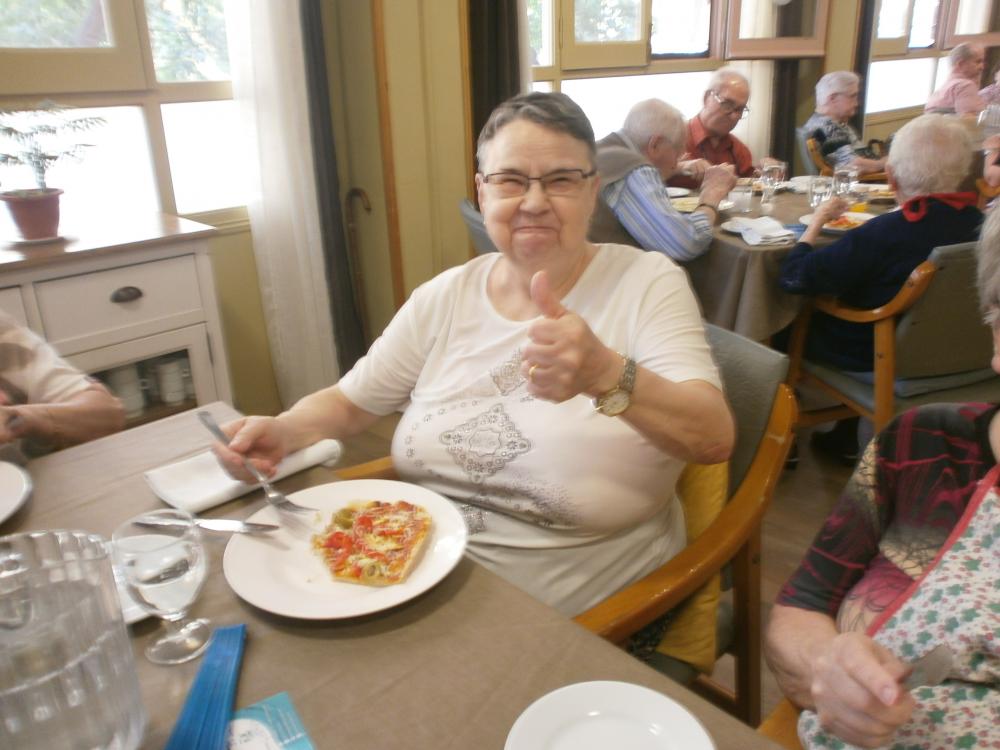 Avui els nostres residents han elaborat un plat molt especial, ells mateixos han fet pizza, un plat que sen's dubte agradat a tothom i que se l'han menjat molt a gust. Aquí en tenim la prova.