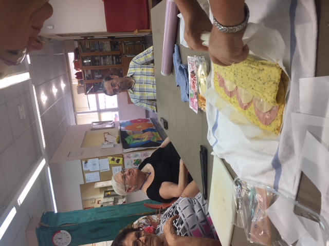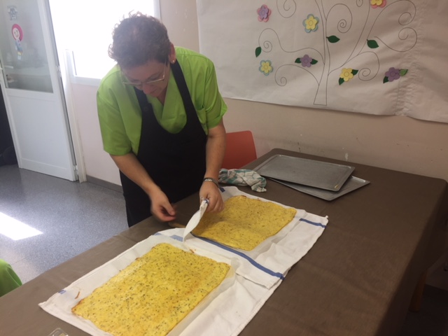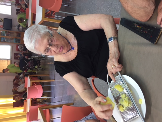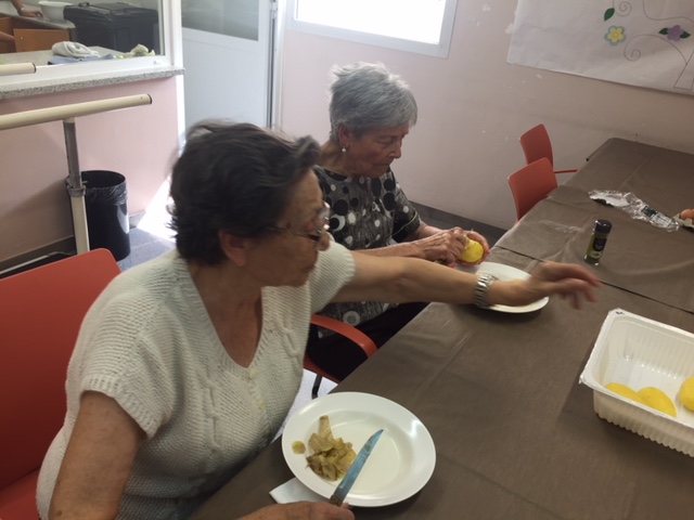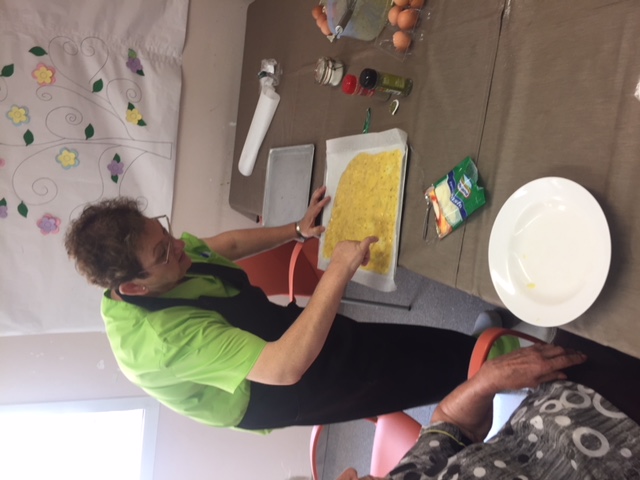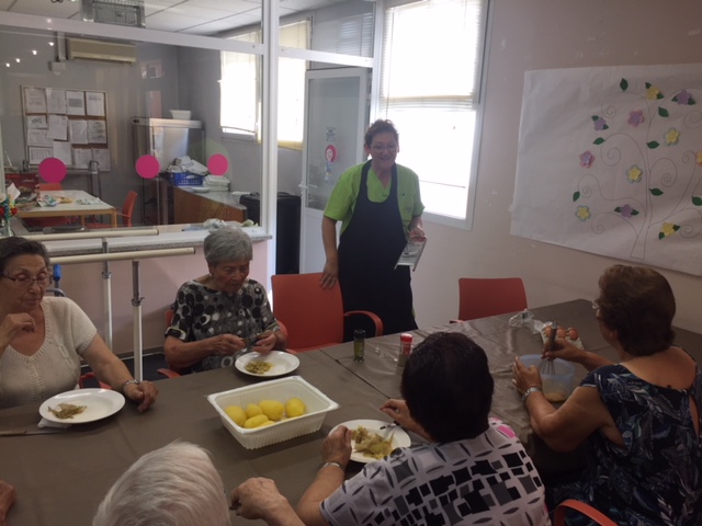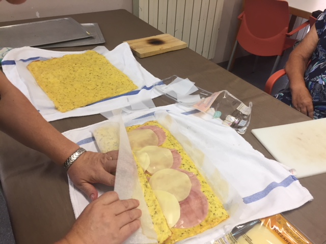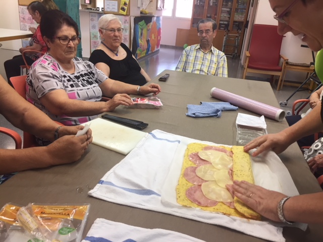 Nuestro taller de cocina de Agosto, liderado por Conchi, ha sorprendido a todos los usuarios y trabajadores del centro. Brazo Gitano salado. Huevos, patata, parmesano, jamon, queso...todo cocinador al horno sin nada de grasa. Nuestros abuelos han pelado y rallado patatas, batido huevos,n preparado el jamon..y por supuesta lo que más les ha gustado es... comérselo!! Estaba buenísimo!!!!