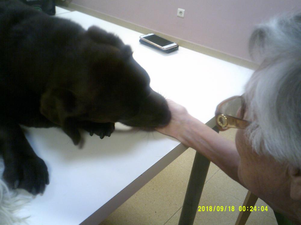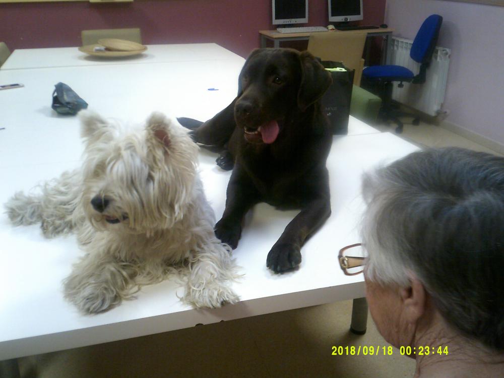 Avui em tingut taller amb uns companys molt especials, han acudit a la Residència els nostres amics els "gossos", em realitzat teràpia cojuntament amb els residents i els gossos. És molt curiós la tranquil·litat i la calma que trasnmeten cap als nostres residents, on és pot treballar individualment o en grup, aquests responen favorablement. Moltes gràcies per poder compartir moments com aquests.