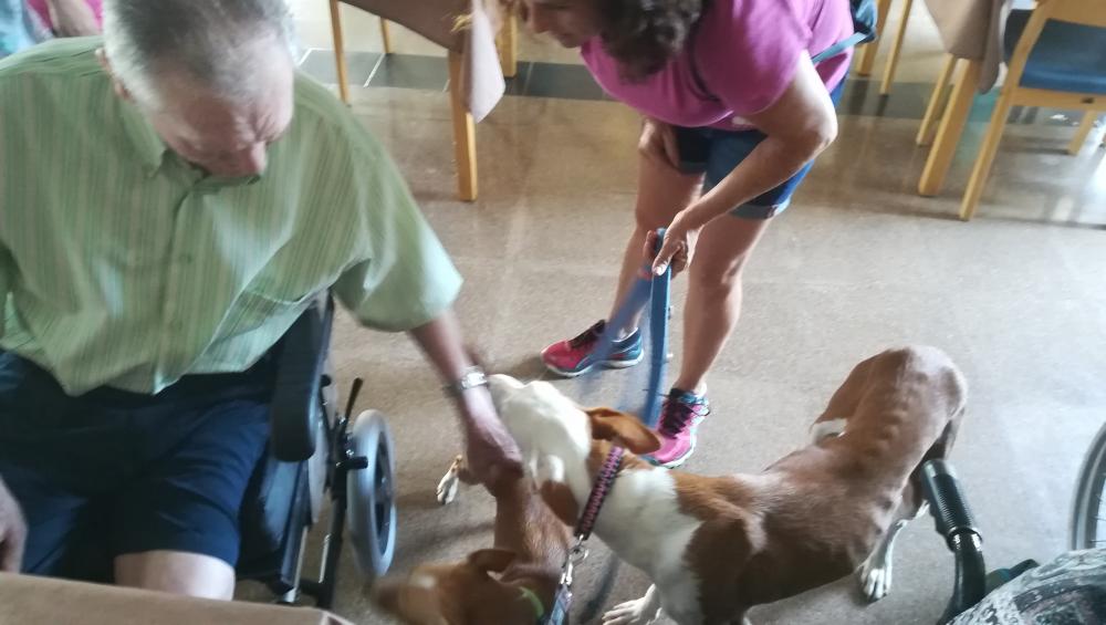 Avui Acolama ha tornat a visitar-nos amb dos de les seves gossetes, Maya i Lluna, dos fantàstiques terapeutes que han fet que els nostres usuaris somriguin i passin una bona estona.