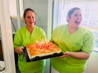 Hoy CONCHI ha vuelto de sus vacaciones...ya teniamos ganas de que volviera! Y hemos aprovechado para celebrar su cumpleaños y el de Carmen Castillo. Así que ellas nos han invitado a merendar pastel.. muchas gracias!! y FELICIDADES chicas!!