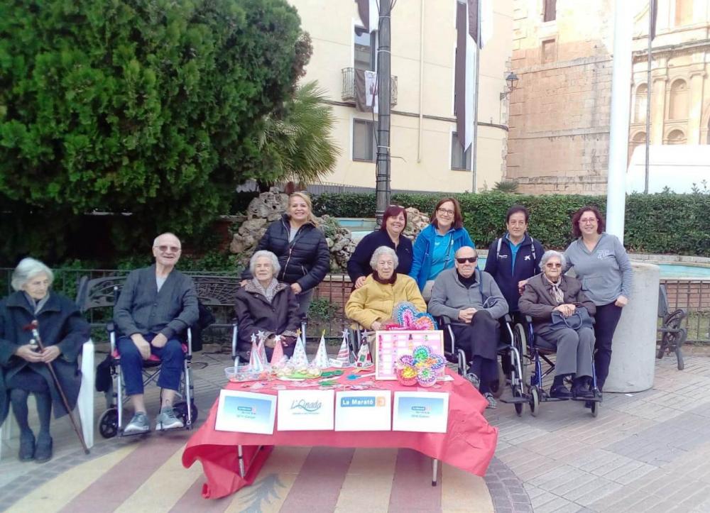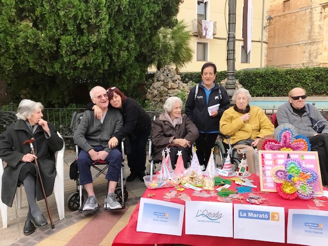 Aquest matí un grup de residents de L'Onada Riudoms hem anat al mercat de Riudoms, a la plaça de l'Església, on hem montat una parada per tal de recaptar fons per la Marató de TV3.
