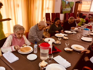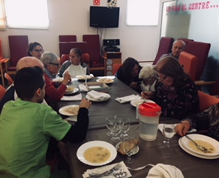 Al centre de dia som una gran familia i ens agrada celebrar el nadal junts, així que hem preparat un dinar molt especial: de primer sopa de galets i de segons braons de xai. El postre, ja sabeu.... turrons, polvorons i neules!! Que bonic compartir aquests moments amb la gent que estimem.