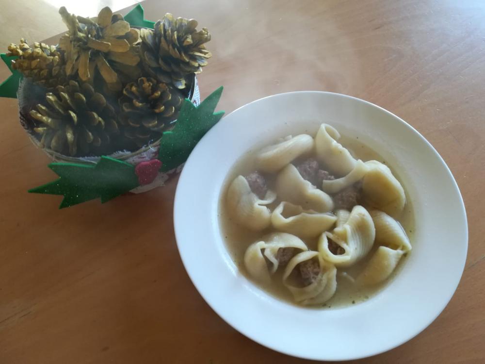 El menú ha comptat amb un entrant de cóctel de marisc. De primer plat hem menjat la tradicional sopa de galets. De segon, corder al forn amb guarnició. I de postres, tronc de Nadal.