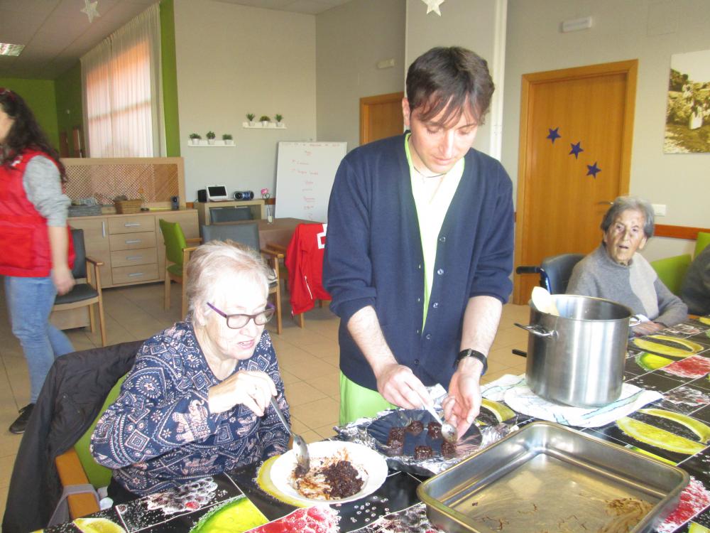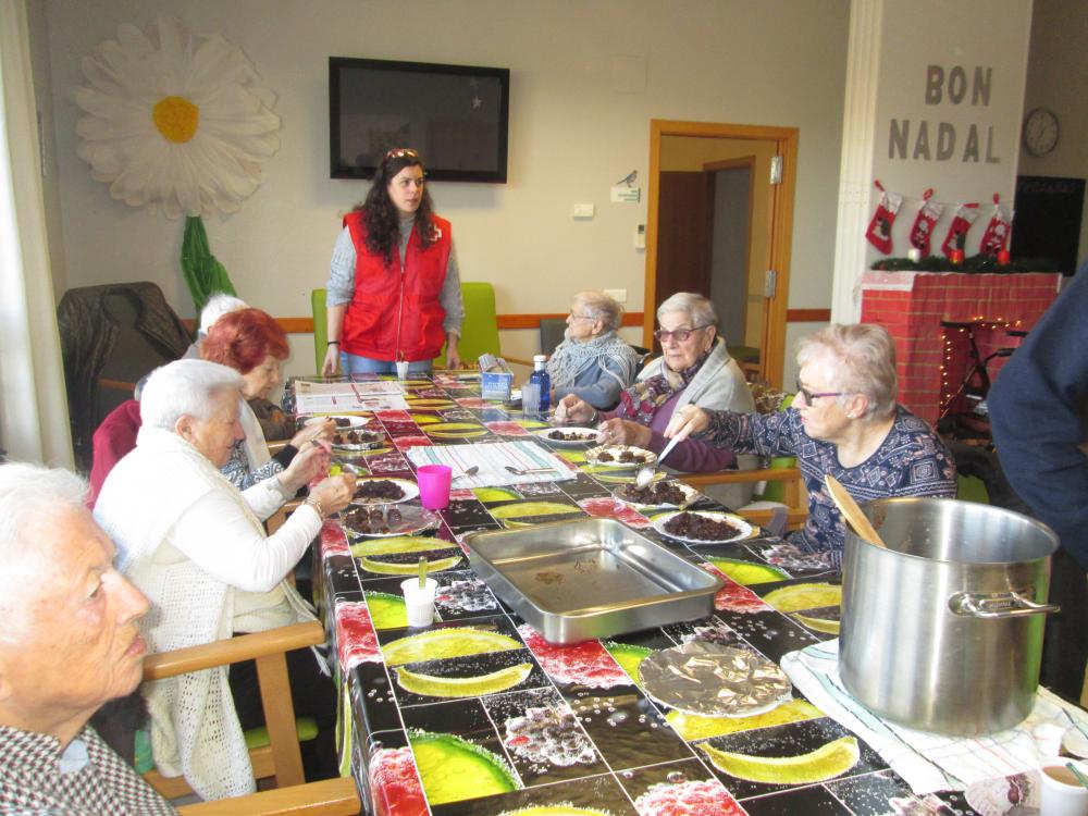 Som uns artistes! Primer vam picar tots els fruits secs, després juntament amb l'equip de Creu Roja vam desfer tota la xocolata i vam passar a realitzar els bombons. Ens van sortir boníssims!! Per acabar els hem posat ben embolicats per portar cap a casa i que els tastin tothom que vulgui!