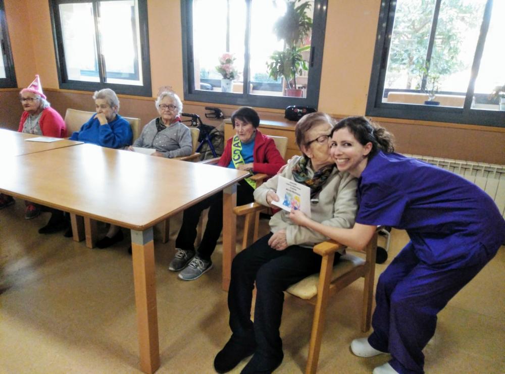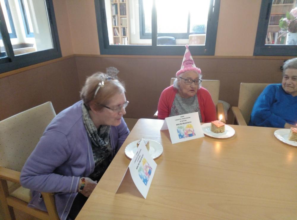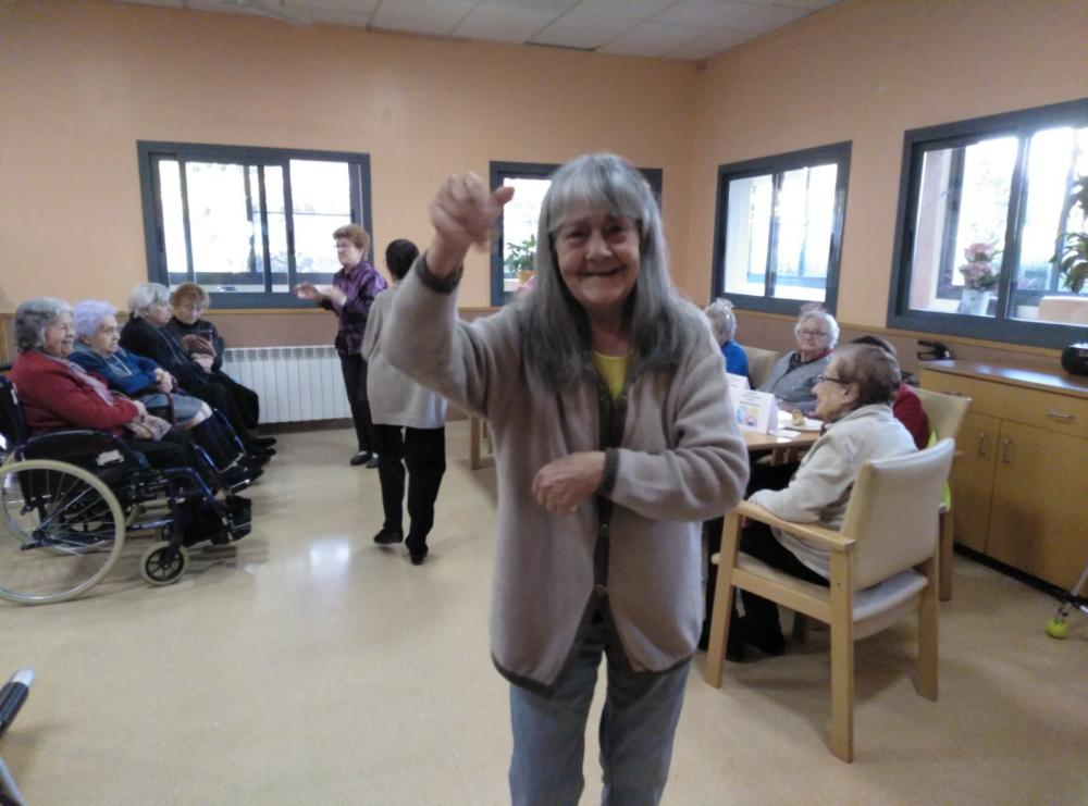 Després del berenar hem fet una sessió de música i ball. Cadascun dels residents que celebrava l'aniversari demanava la seva cançó preferida. Ha estat molt divertit!