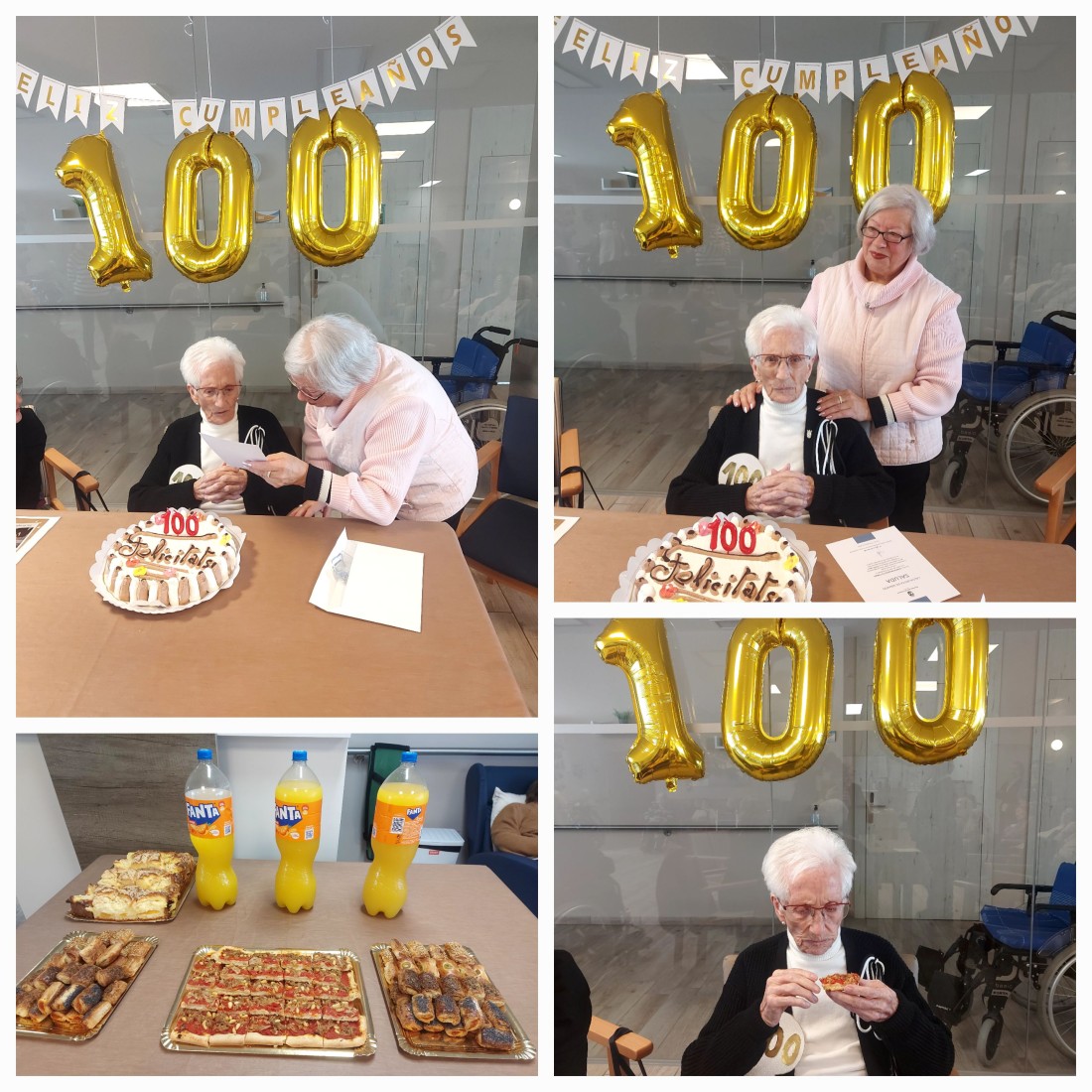 Marcela, concejala de Serveis Socials, li ha fet entrega d'una felicitació i de l'escut de Vinaròs a més d'un pastís on hem bufat els 100 ben fort acompanyada de la seva família, treballadors i companys/es.