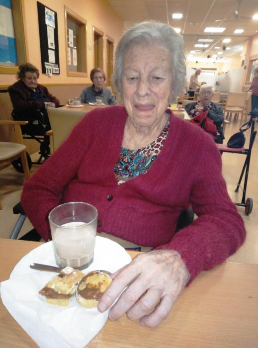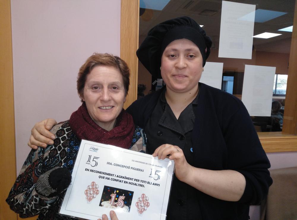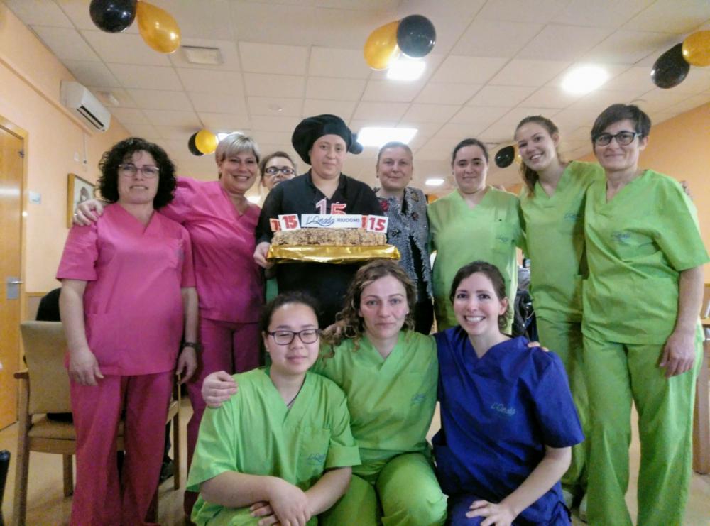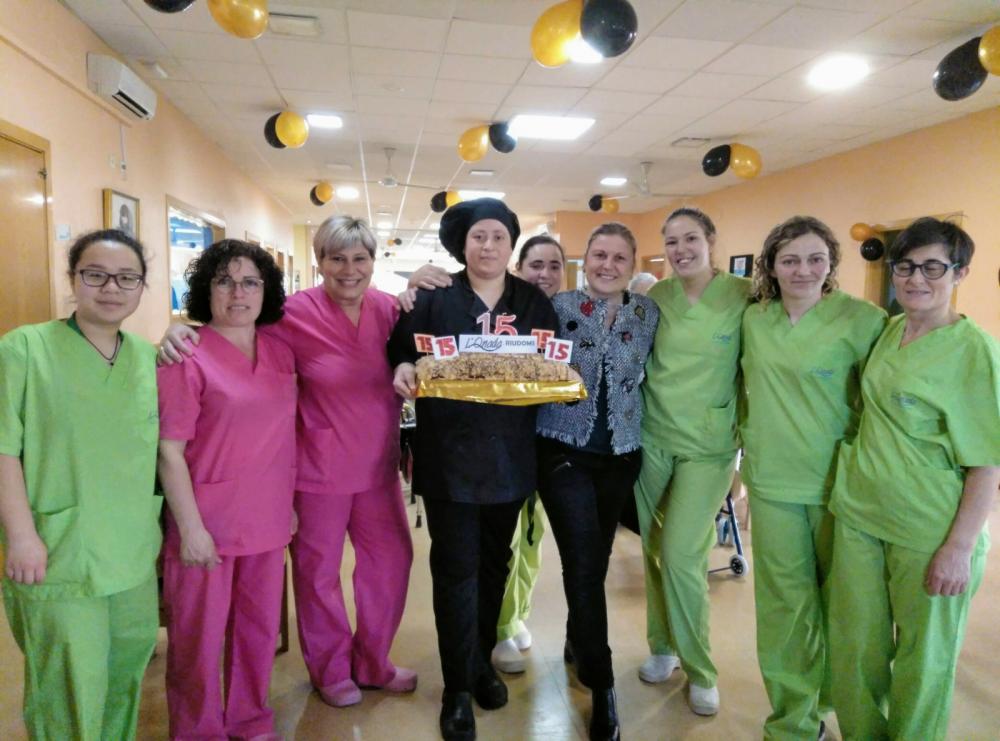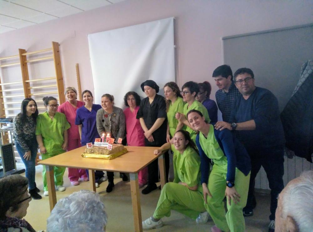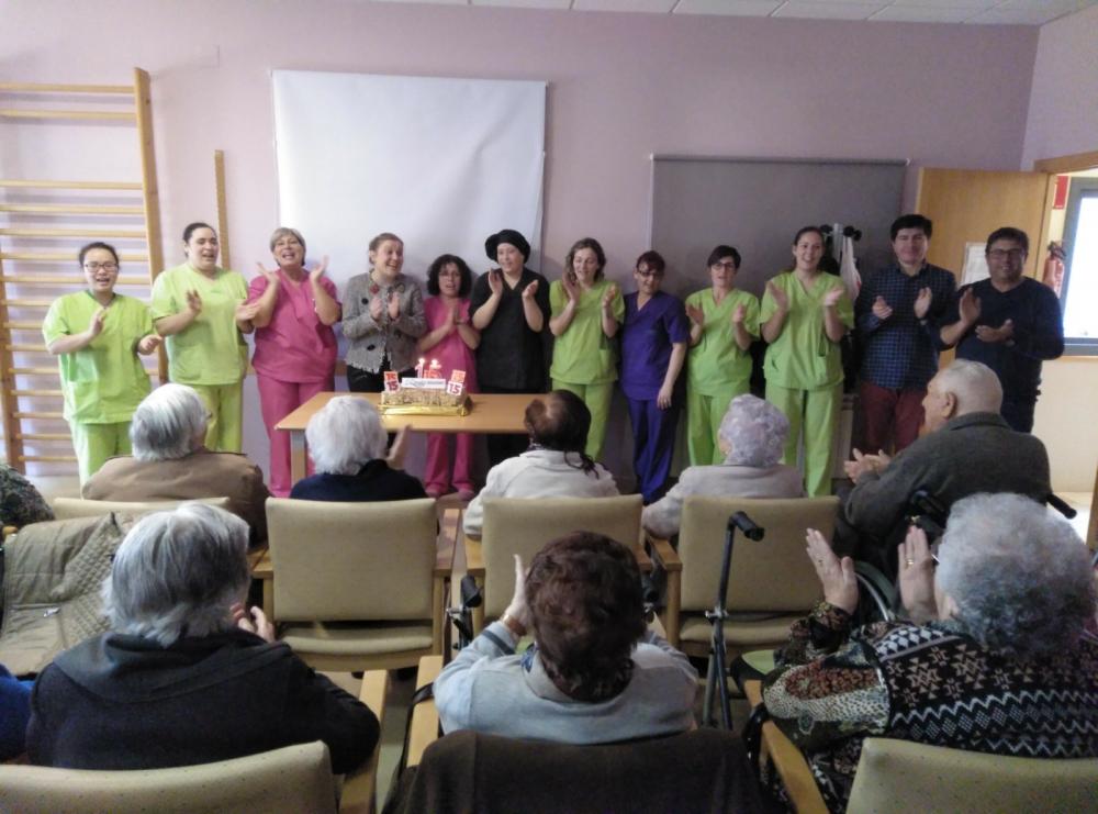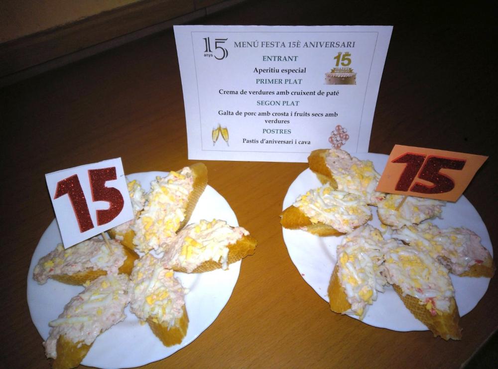 Després els nostres residents van poder degustar un menú especial que va comptar amb un aperitiu sorpresa, crema de verdures amb cruixent de paté de primer plat; i de segon plat, galta de porc amb crosta i fruits secs amb verdures. Per postres vam poder bufar les espelmes del pastís d'aniversari i vam poder brindar amb cava tots junts.