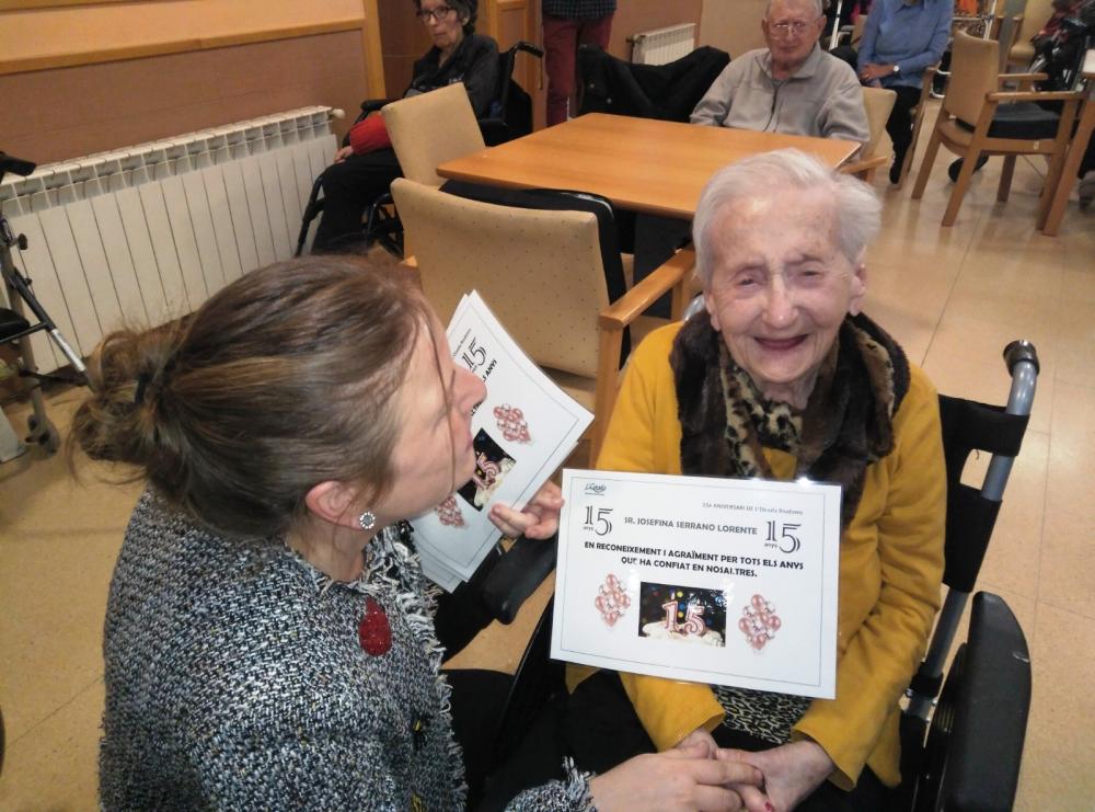 A les 17h va tenir lloc l'acte "Els millors moments de L'Onada Riudoms", en que vam fer un repàs dels millors moments d'aquests 15 anys, projectant vídeos i fotografies, així com amb la col·laboració de testimonis que han viscut la trajectòria del centre. També vam fer un reconeixement i homenatge als residents que fa més anys que confien en els nostres serveis. Va ser un acte molt emotiu!