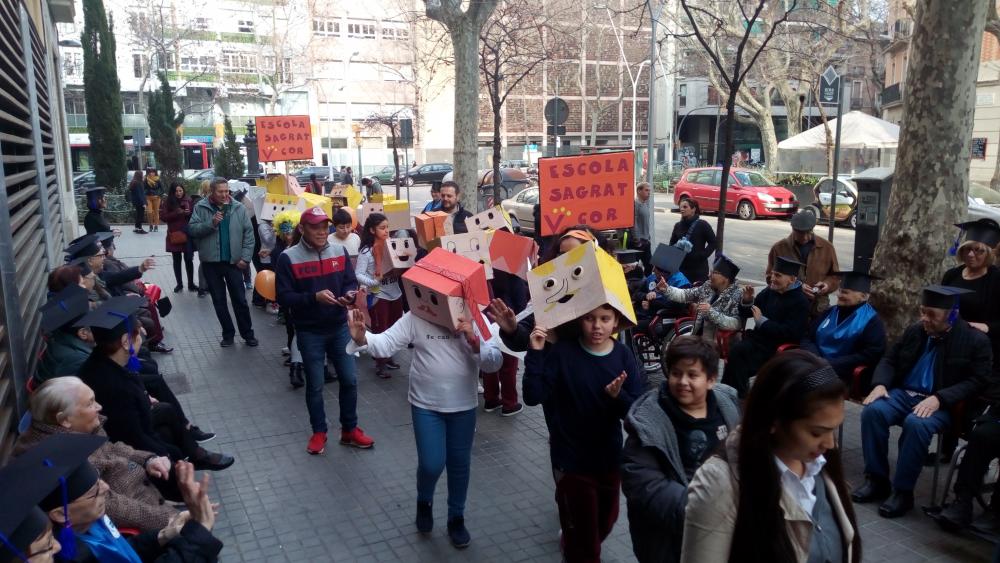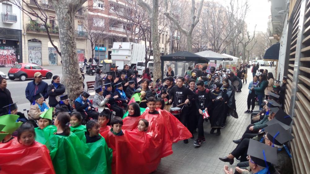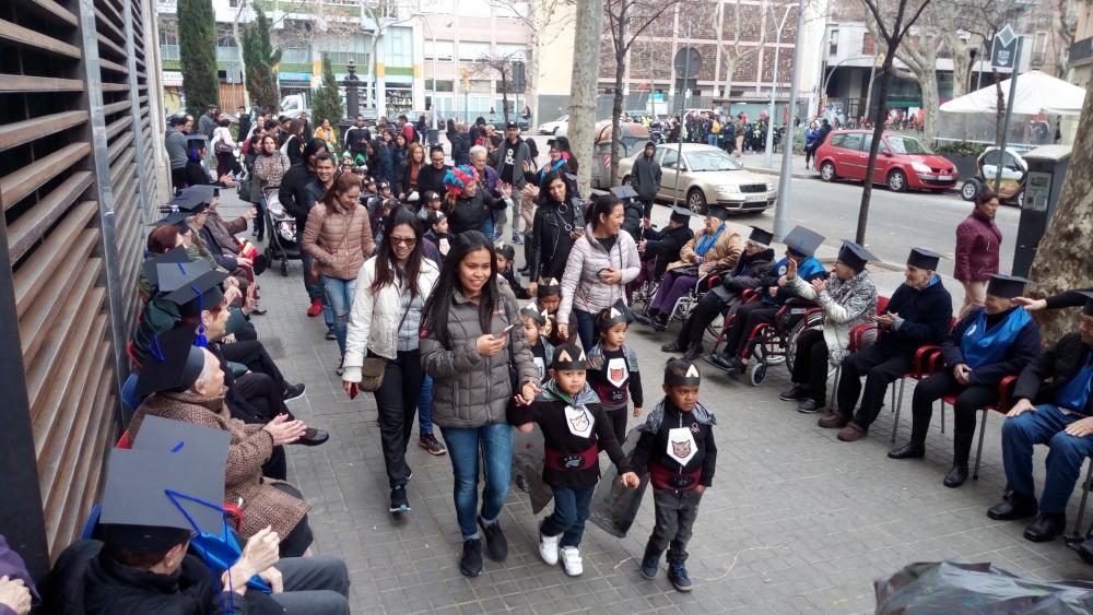 A la tarda de divendres primer vam poder veure la rúa de les escoles del barri i després vam tenir la nostre "festa de graduació" amb diplomes i tot!!