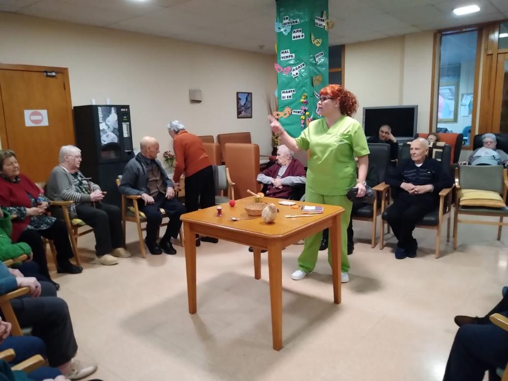 Primer van posar uns quants objectes en un sac i van anar passant-la pels nostres residents. Ells posaven la mà a dins i sense mirar havien d'endevinar els objectes que hi havien. També vem treballar la memòria, ja que intentava que els recordessin per la propera volta.