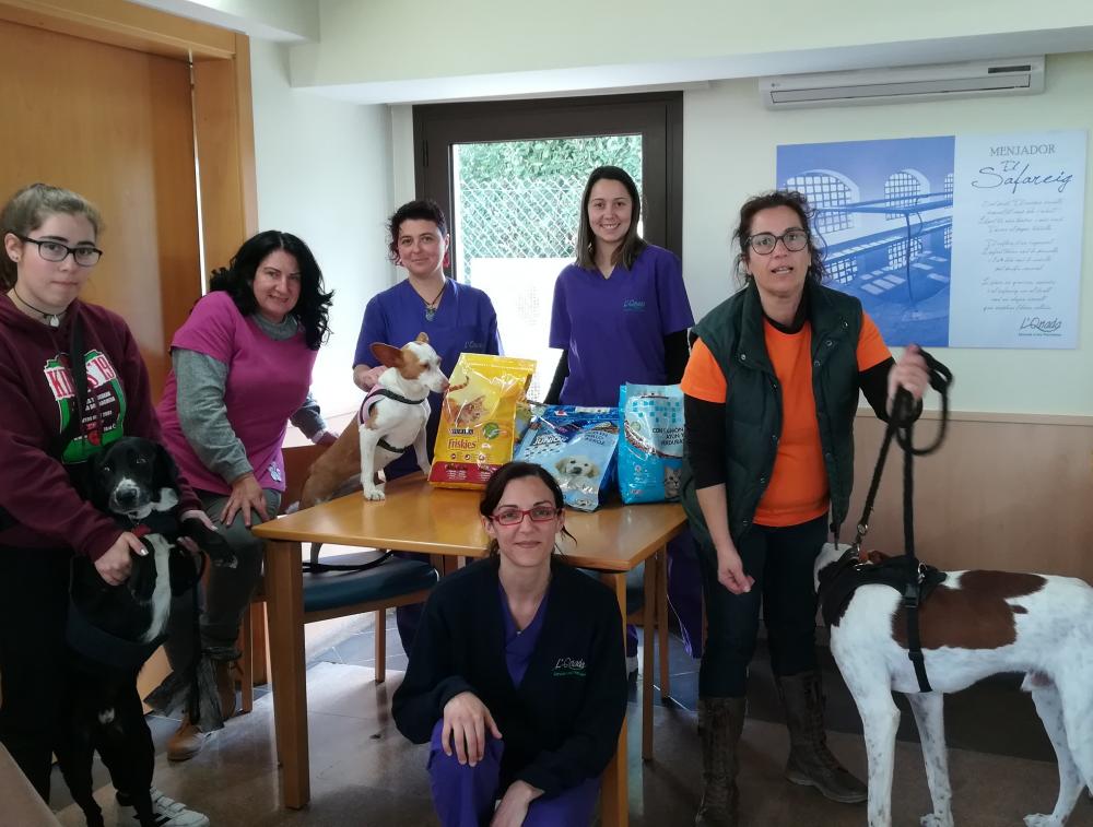 L'equip de treballadors hem aprofitat per fer un donatiu de pinso de gos i gat per als peluts de l'associació.
