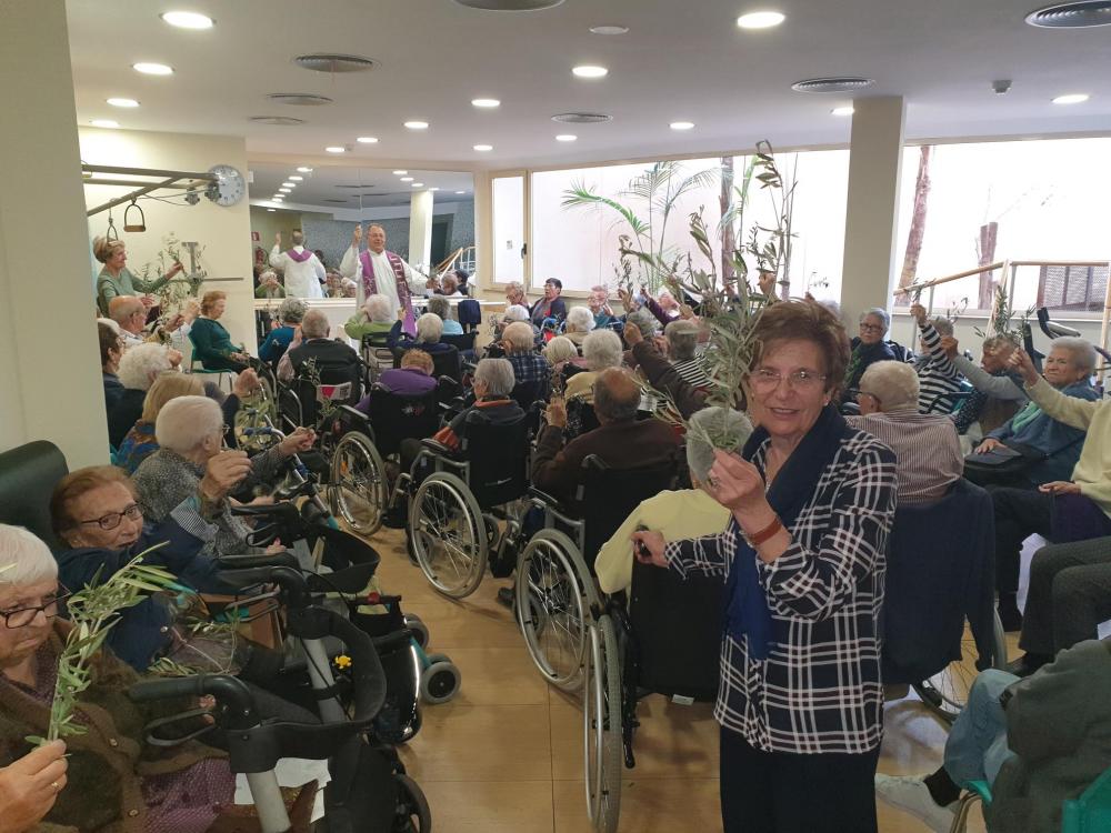 Hem celebrat aquesta setmana al centre la missa de Rams amb la tradicional benedicció de la palma/olivera. Gràcies a la implicació de mossen Carlos i de les voluntaries d ela parròquia.