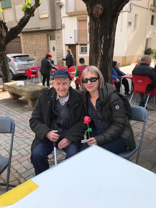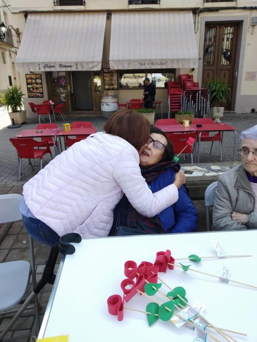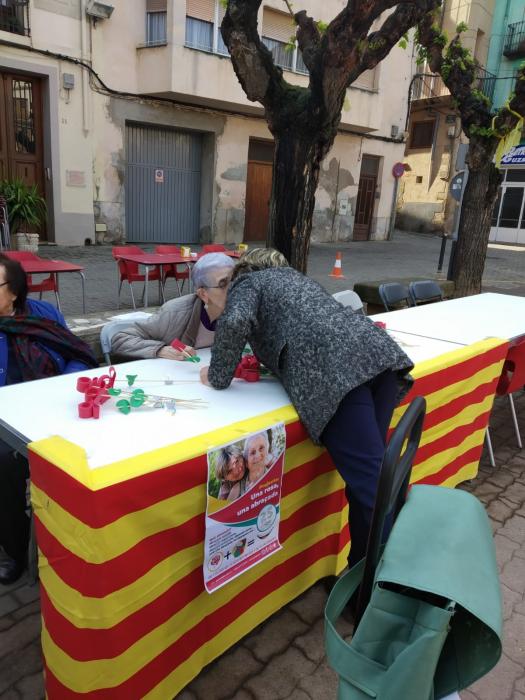 Pel matí hem fet sortida a la plaça i allí hem muntat paradeta per tal de poder repartir les roses que els nostres residents han anat fent aquests dies.