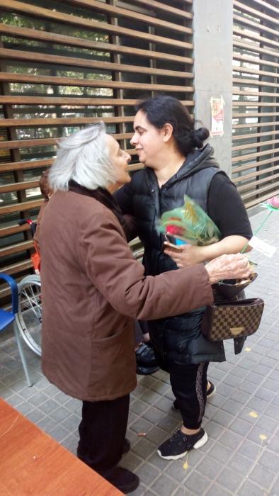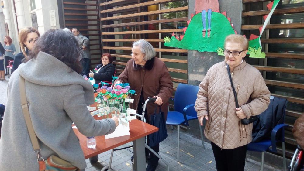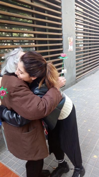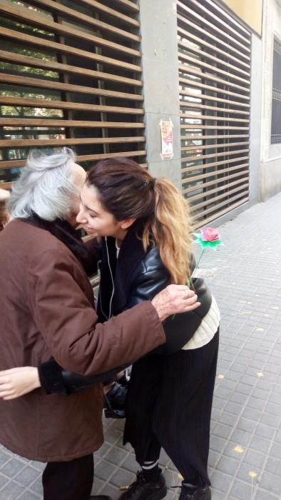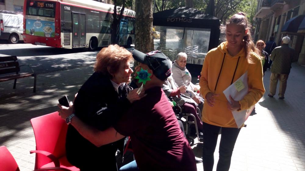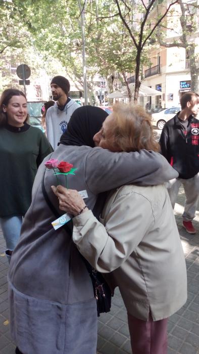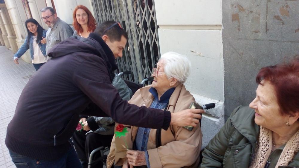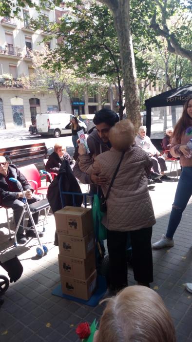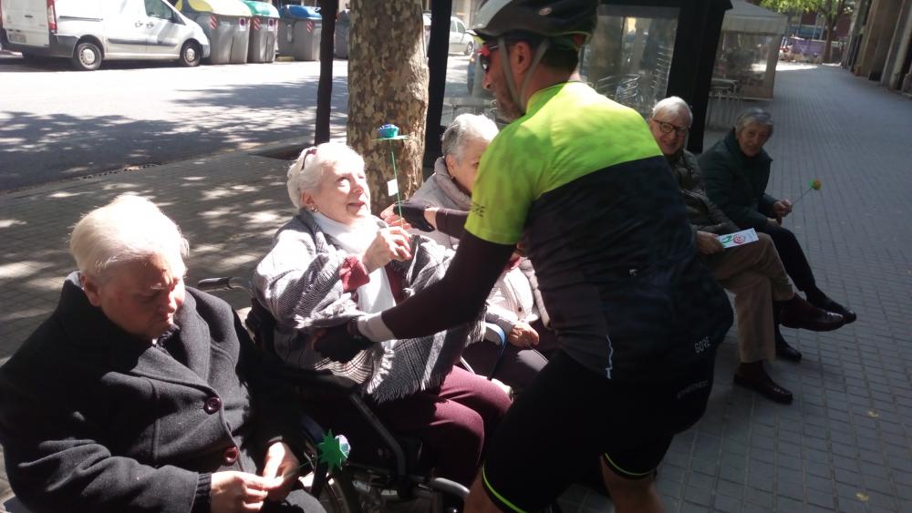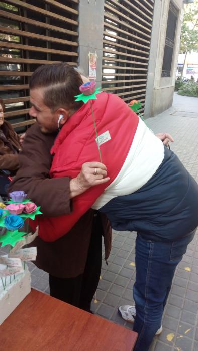 El dia de Sant Jordi vam sortir, com cada any, a repartir roses fetes per nosaltres a canvi d'abraçades.