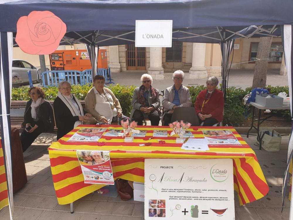 Com cada any l'Unió de Comerç ens facilita una paradeta a la plaça per a poder dur a terme el nostre projecte Una Rosa Una abraçada, on els nostres residents intercanvien roses per abraçades amb la gent del poble. Un dia fantàstic!!