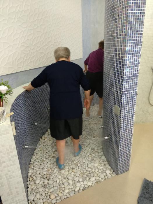 Avui em començat a fer taller d’hidroteràpia, amb aquest, treballem l’equilibri, la propiocepció, l’estimulació sensorial i afavorim la circulació de les cames.