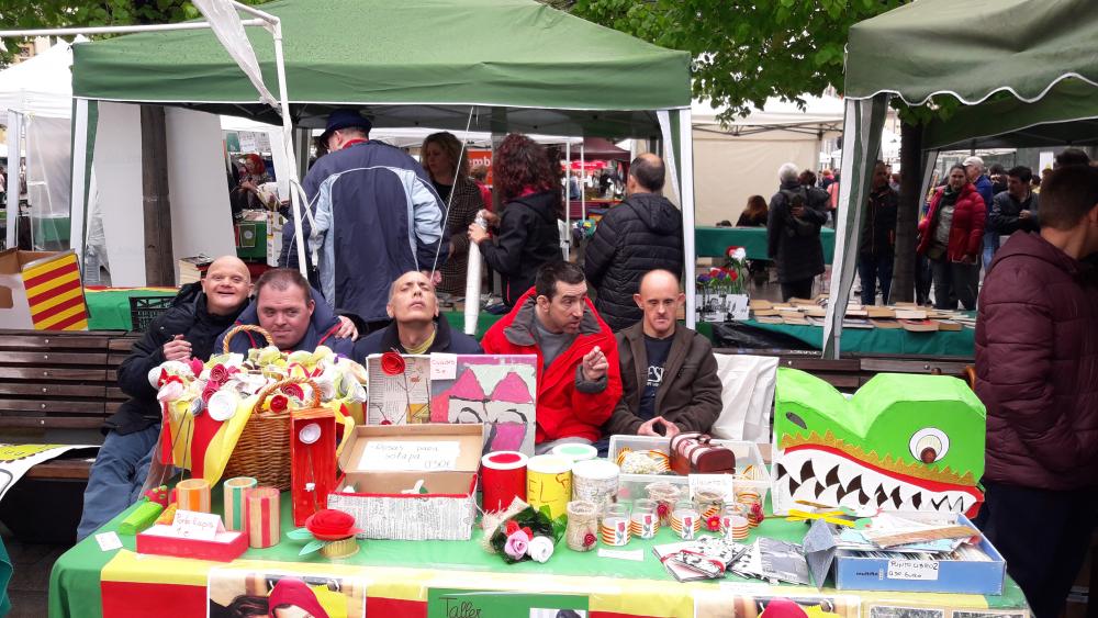 va ploure una mica però finalment vam poder treure la nostra paradeta i fer la nostra ja tradicional "una rosa, una abraçada" tot un èxit com sempre...