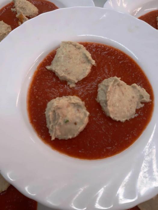 Compartim imatges d'alguns dels últims plats texturitzats que han preparat les nostres cuineres: Amanida en tres textures i bunyols amb tomàquet.