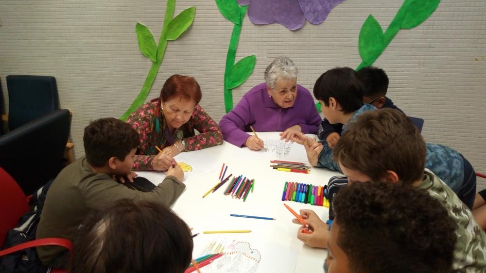 Amb motiu de la setmana solidària que celebren cada any els nens i nenes de l'escola Sagrat Cor Aldana, dimarts van venir els alumnes de 6è a treballar amb nosaltres uns dibuixos d'obres de Antoni Gaudí. I avui al matí hem anat a fer una volta per la bnotiga Solidària que tenen al pati de l'escola.
